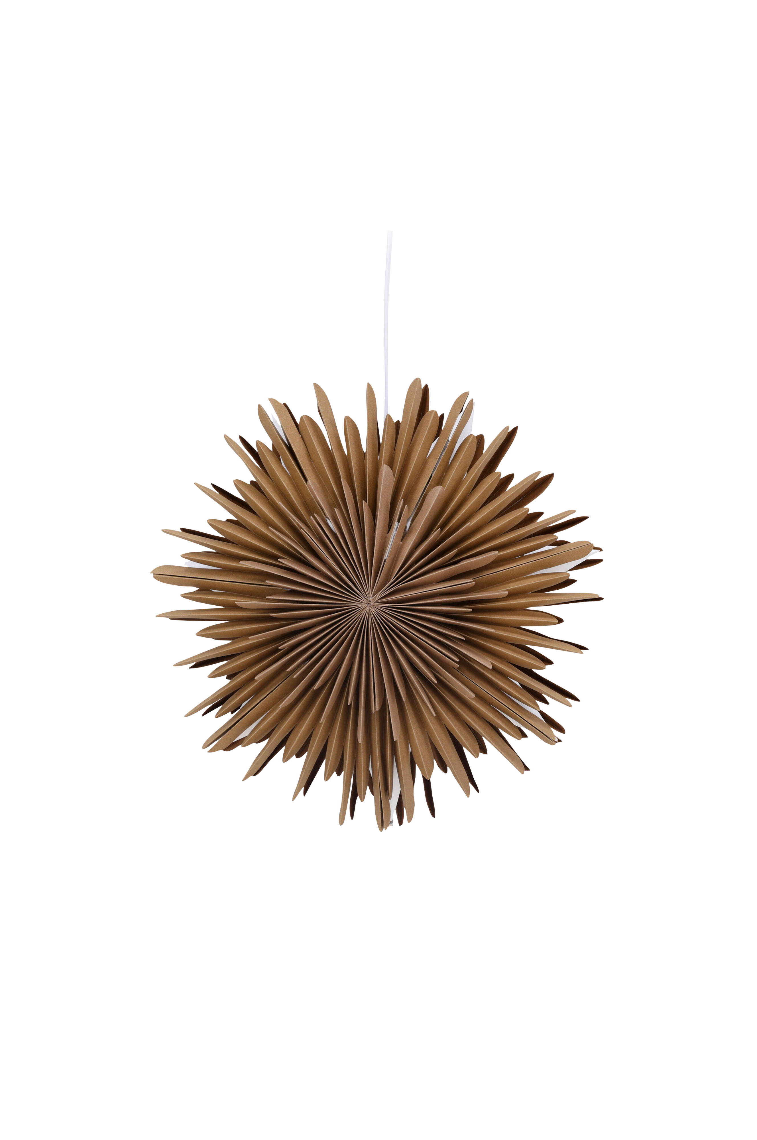 Luo kotiin kutsuva valaistus, joka luo hetkessä lämmintä tunnelmaa! Sälen-sarjan kaunis moniulotteinen valotähti on valmistettu paperista. Useiden kerrostensa ansiosta valaisin luo kauniin ulottuvuuden huoneeseen ja näyttää itse tyylikkään moniulotteiselta. Se on täydellinen sisustusyksityiskohta.