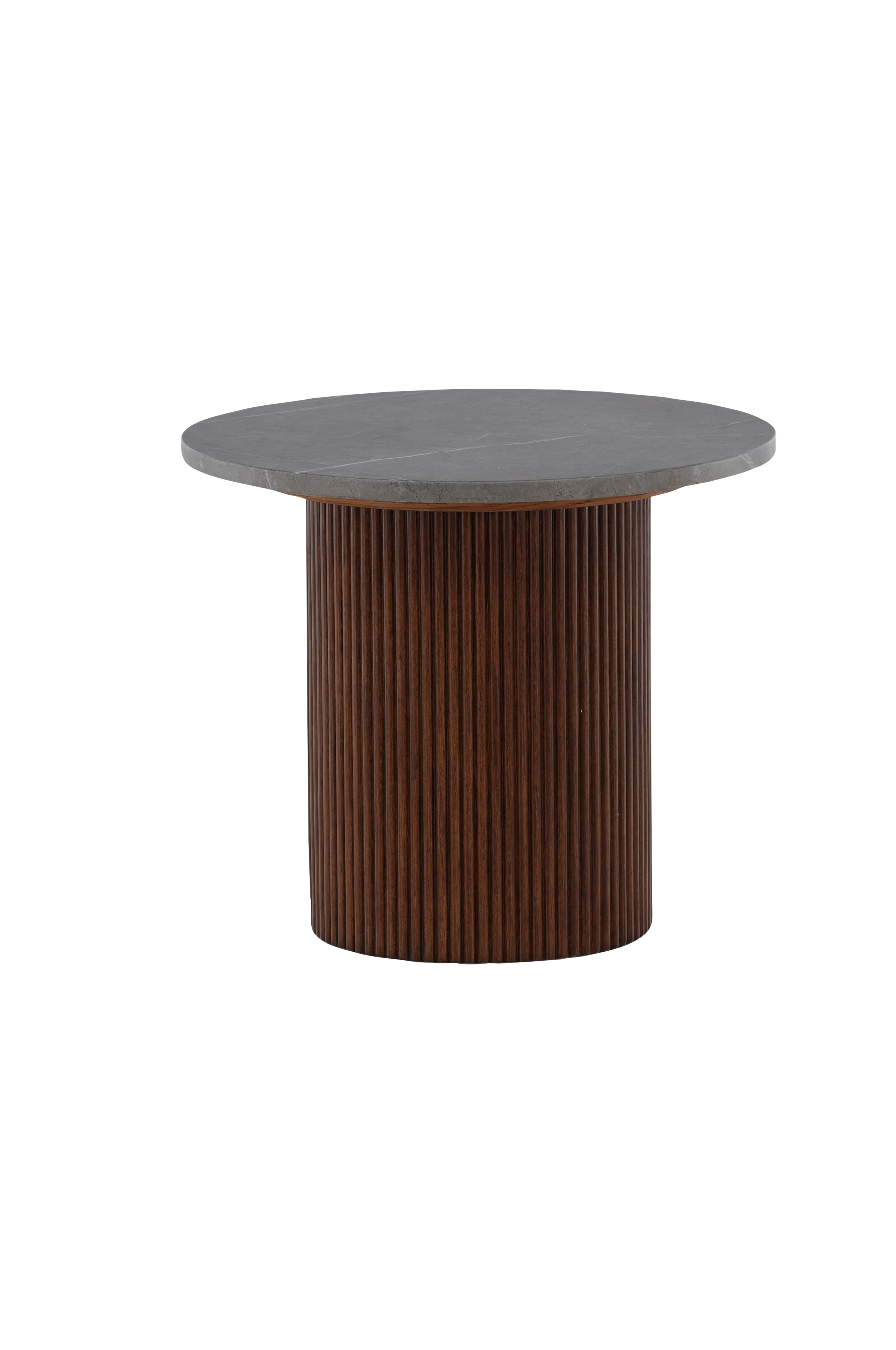 Härön-sivupöydässä on ainutlaatuinen design - upea yhdistelmä MDF-levyä ja saarnea! Vind-mallistoon kuuluvan sivupöydän sylinterinmuotoinen runko on rimamaista, tummanruskeaa puuta. Pyöreä pöytälevy on harmaata MDF-levyä, mikä antaa katseenvangitsijalle upean ilmeen. Pöytä sopii sivupöydäksi, laskutasoksi tai pylvääksi - valinta on sinun!