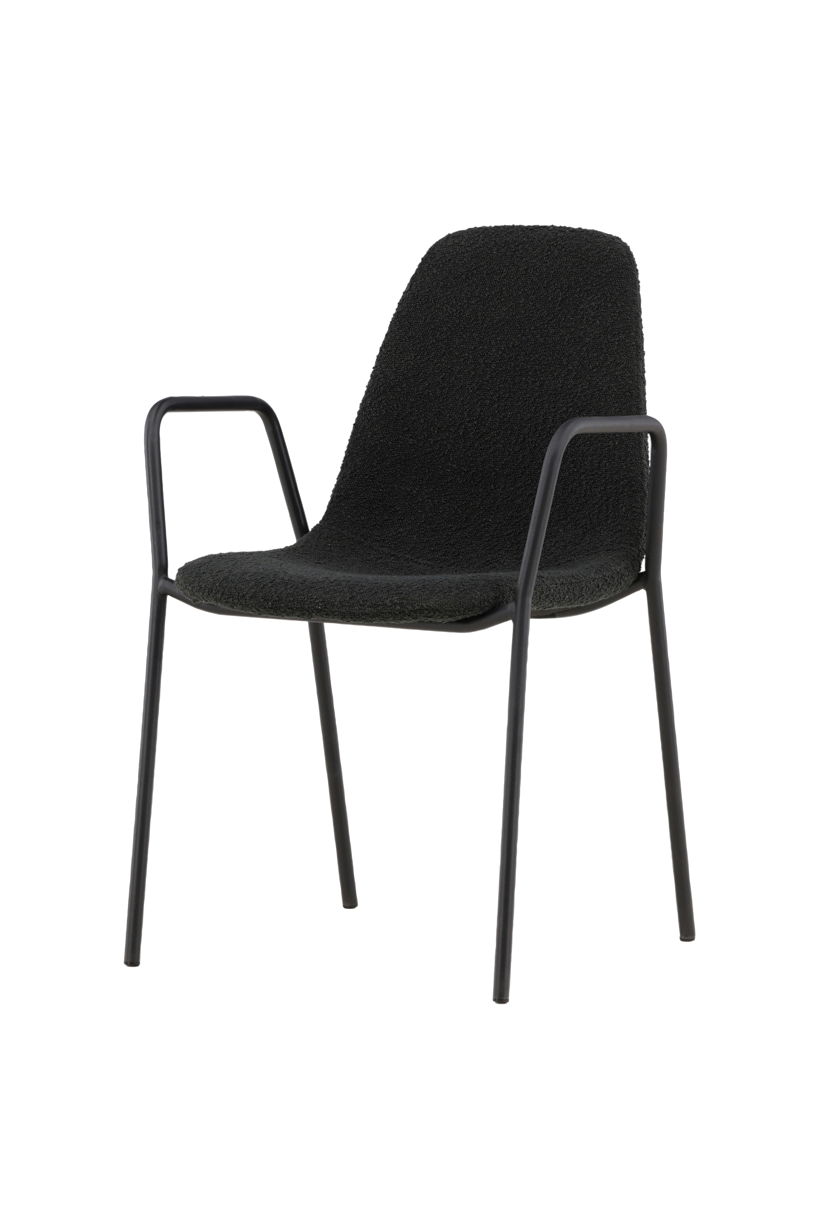 Ruokapöydän ääreen tulee olla mukava istahtaa - kalusta ruokailutila Klädesholmen-sarjan trendikkäillä ruokapöydän tuoleilla! Upeassa tuolissa on skandinaavinen muotoilu, kauttaaltaan mustalla bukleekankaalla verhoiltu istuinosa ja kapeat jalat, joissa on integroidut metalliset käsinojat. Mukavuutta parantava pehmustettu istuinosa kutsuu viettämään pitkiä ja viihtyisiä illallisia. Yhdistä tyylikkääseen ruokapöytään, niin saat täydellisen ruokailuryhmän kodin sydämeen!