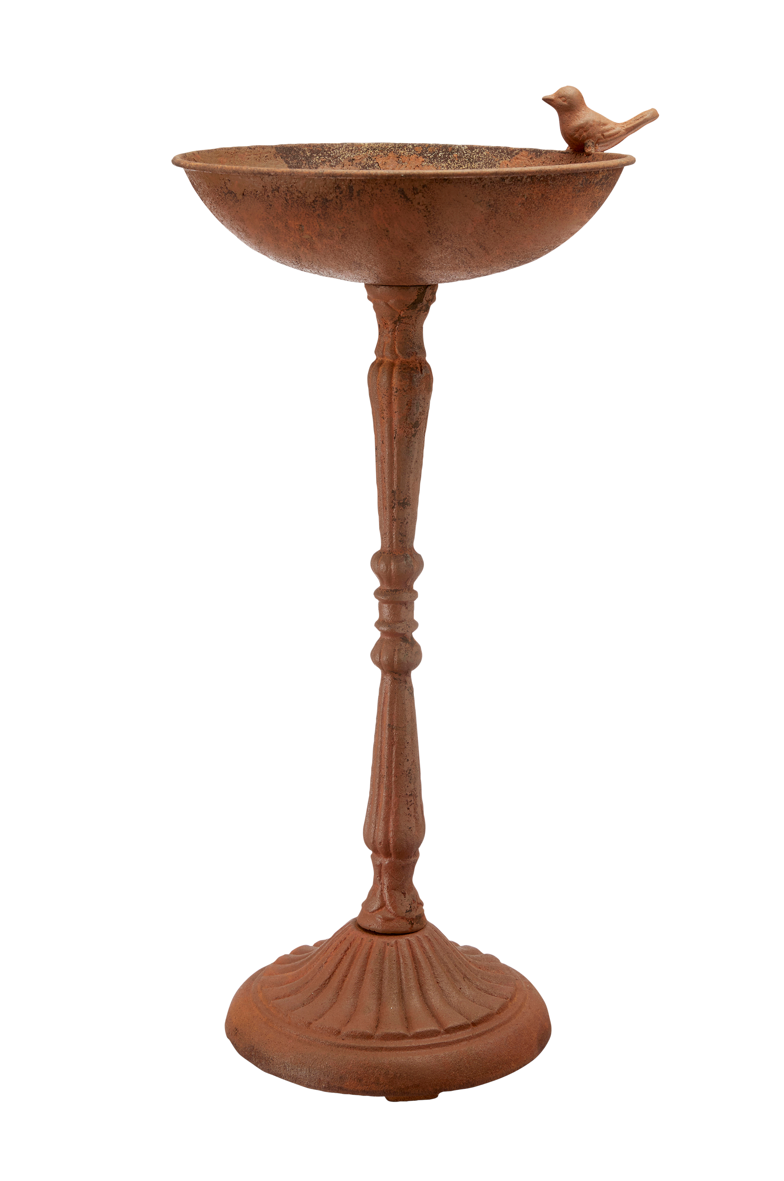 Roya-lintuallas rautaa ja metallia. Korkeus 49 cm ja halkaisija 23 cm.