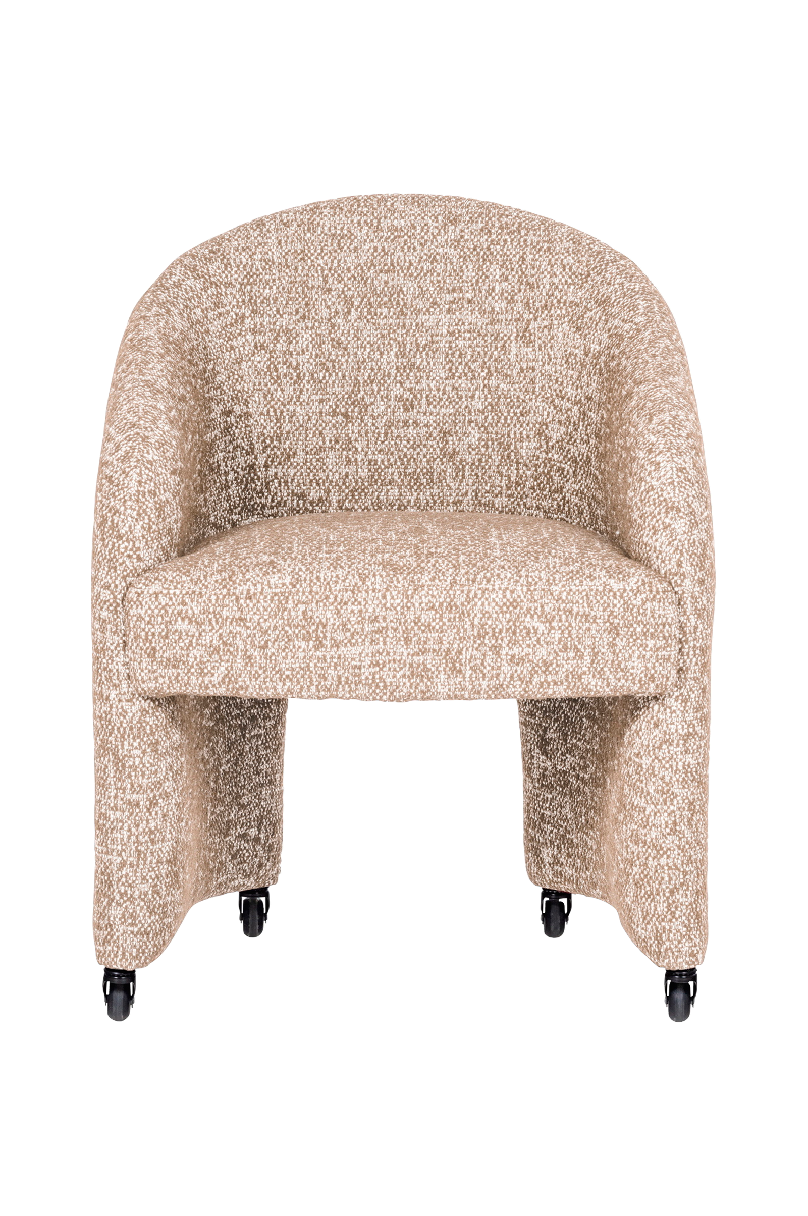 hollantilaisen sisustusbrändin wooodin pyörillä varustettu Cordo-ruokatuoli on mukava lisä ruokasaliisi. Täysin verhoiltu tuoli tuntuu miellyttävältä ja tarjoaa tukea pitkien aterioiden tai keskustelujen aikana ystävien ja perheen kanssa. Neutraali väripaletti tekee tuolista sopivan erilaisiin sisustustyyleihin ja antaa rauhallisen ulkonäön. Käytännölliset pyörät helpottavat tuolin liikuttelua, ja kääntyvyysvaihtoehto takaa vapaan liikkumisen pöydän ääressä. Tässä ruokailutuolissa istuinmukavuus ja toiminnallisuus yhdistyvät.