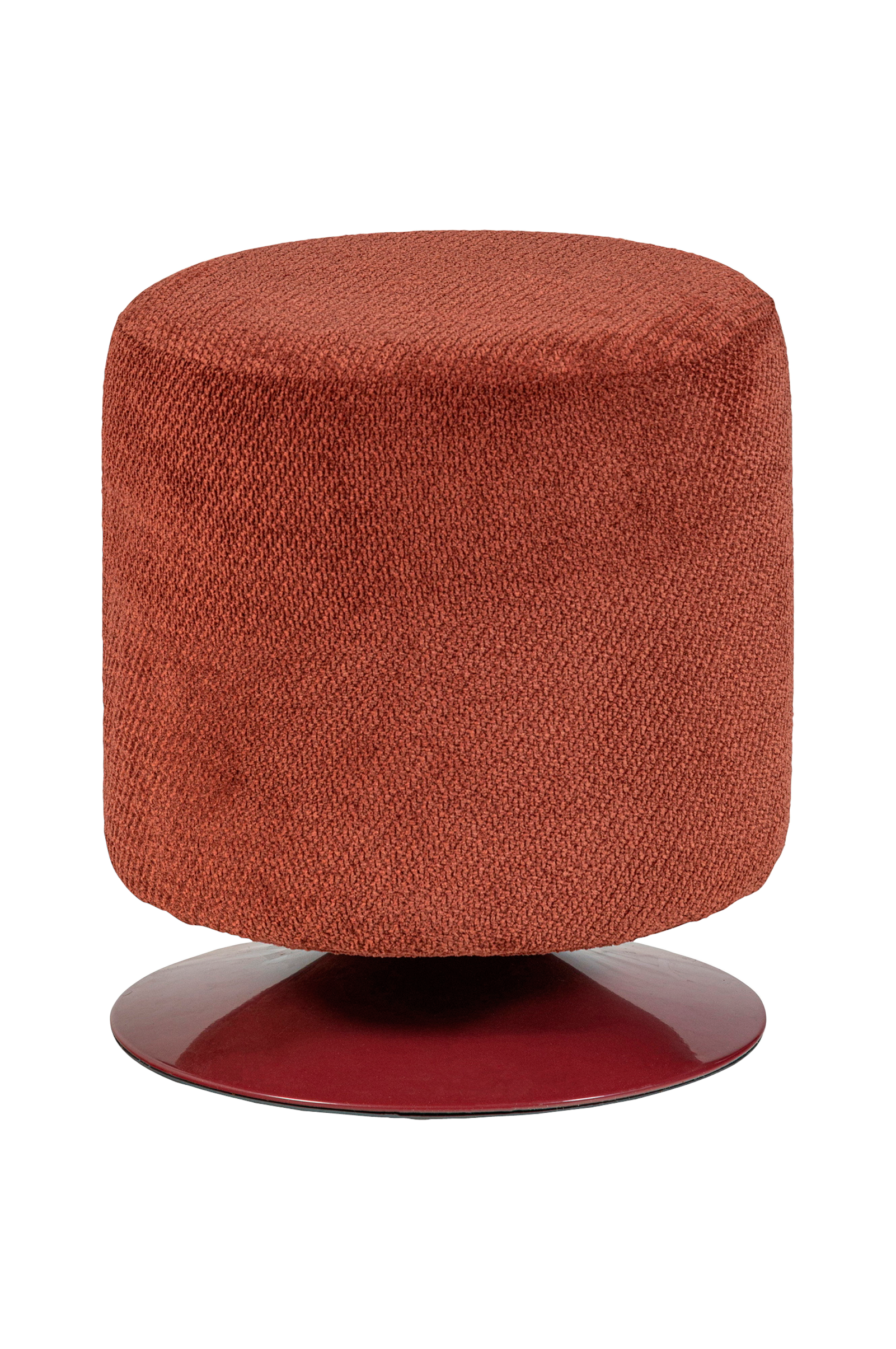 pouf on verhoiltu ylellisellä vibe bouclé-kankaalla, joka koostuu 100 % polyesteristä. Bouclé-kankaalle on ominaista pehmeä, kihara rakenne, joka tarjoaa mukavuutta. Polyesterikangas on tukeva ja sen martindale-luokitus on 20.000. Kääntyvä jalusta takaa vakauden ja mahdollistaa poufin helpon siirtämisen tai kääntämisen haluttuun asentoon.