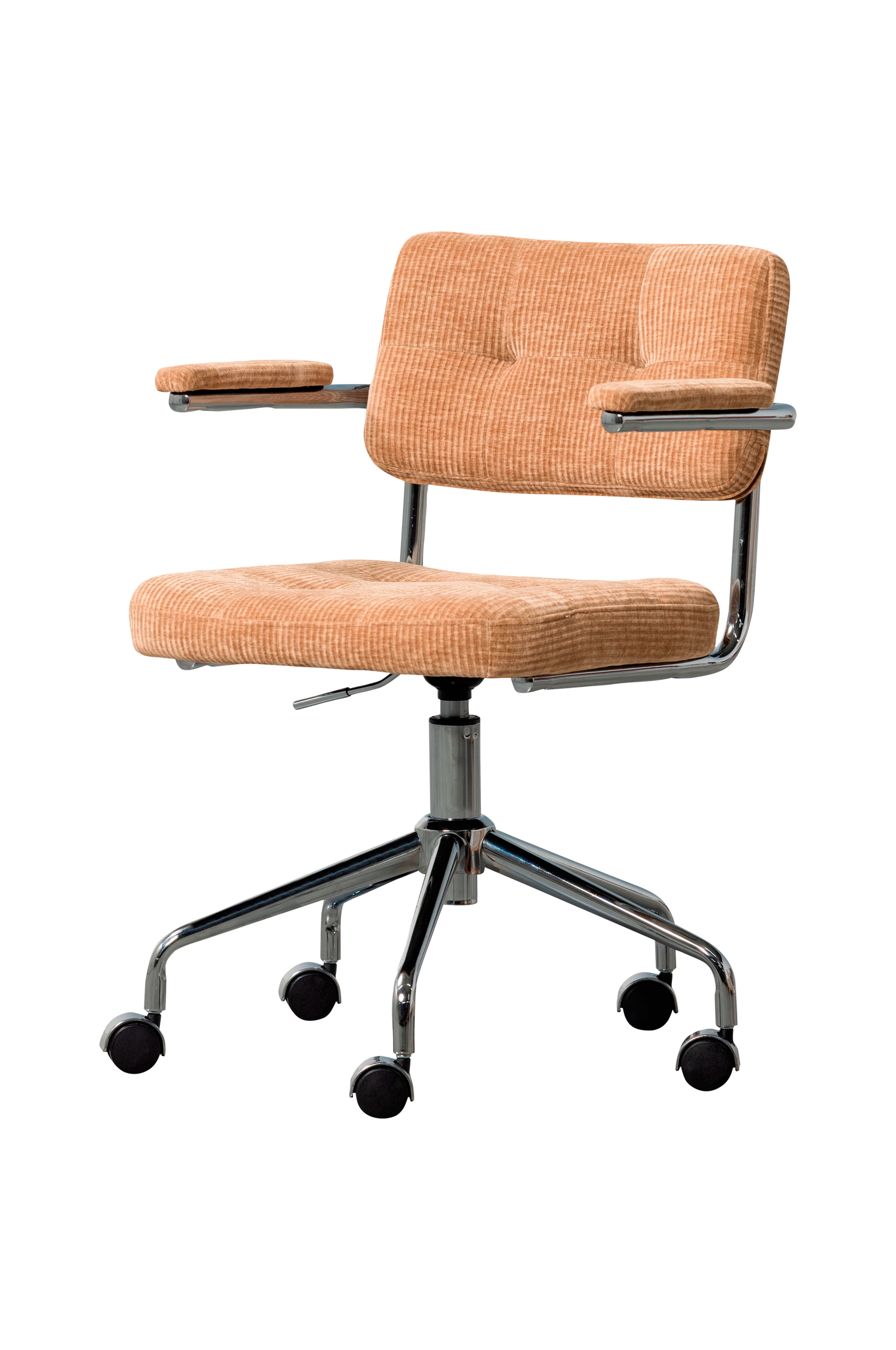 Opiskele tai työskentele tyylikkäästi - Kova-työtuolissamme istut mukavasti ja tyylikkäästi työpöydän ääressä. Kova kuuluu hollantilaisen sisustusbrändin WOODin mallistoon. Tuolissa on pyörät ja vipu istuinkorkeuden säätämiseen. Tuolissa on verhoiltu istuin, selkänoja ja käsinojat, mikä takaa tuolin erinomaisen istumamukavuuden. Älä etsi enää, vaan hanki Kova-työtuoli kotiisi pian.