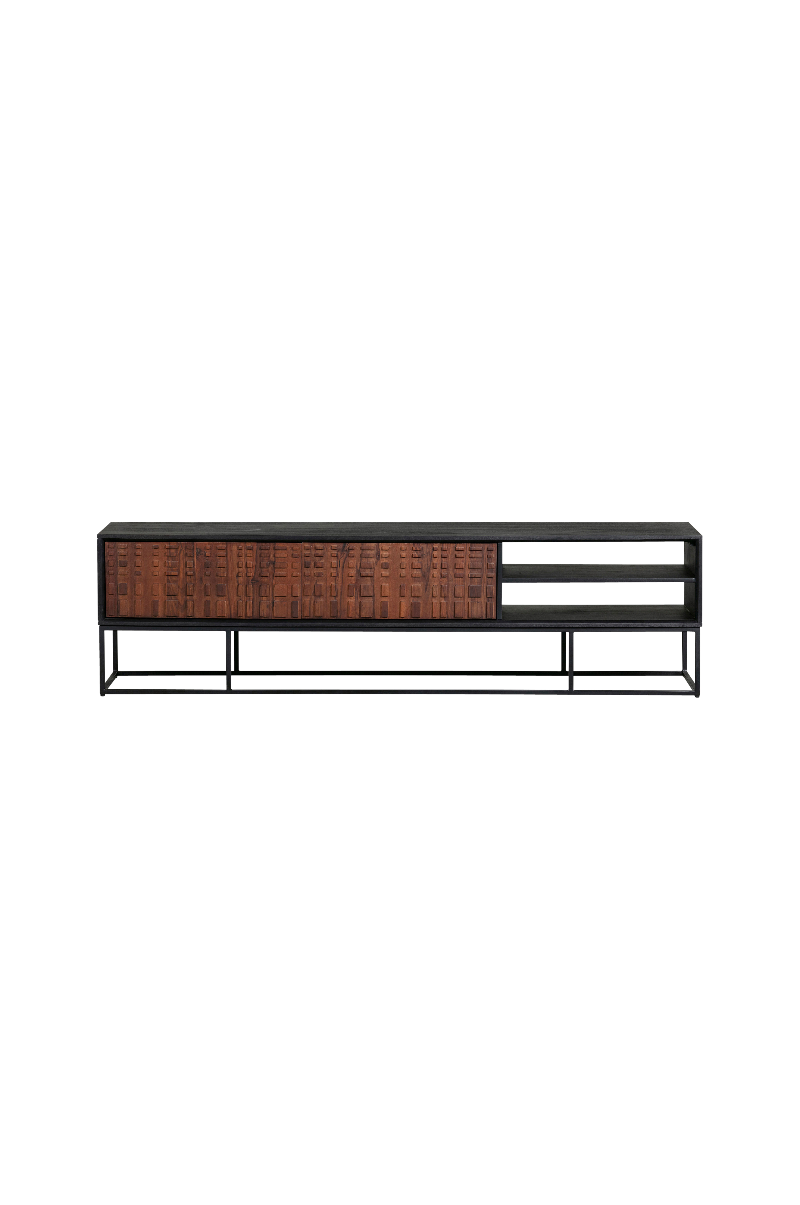 Elegantti mediataso, jossa huoliteltu ulkonäkö. Nuts-mediataso kuuluu hollantilaisen BePureHome-tuotemerkin mallistoon. Sheesam-puusta valmistetussa Nuts-mediatasossa on moderni, näyttävä pinta. Kahdessa värjätyssä ovessa on erityinen kuvio, joka antaa Nuts-mediatasolle aitoa luonteikkuutta.
