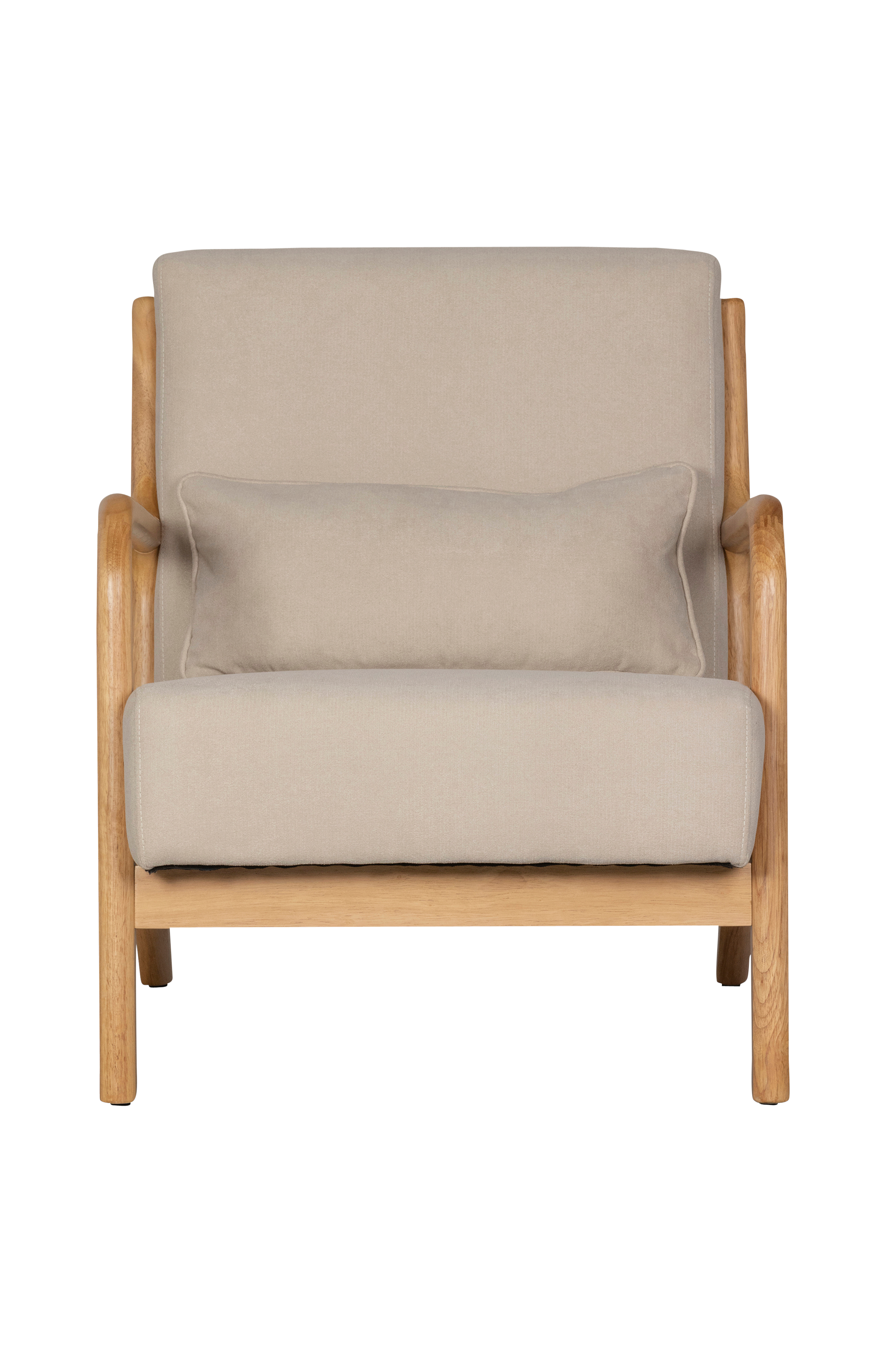 Mukavan nojatuolin käsinojat, jalat ja runko kumipuuta. Nojatuolissa on ylellinen samettipäällinen.