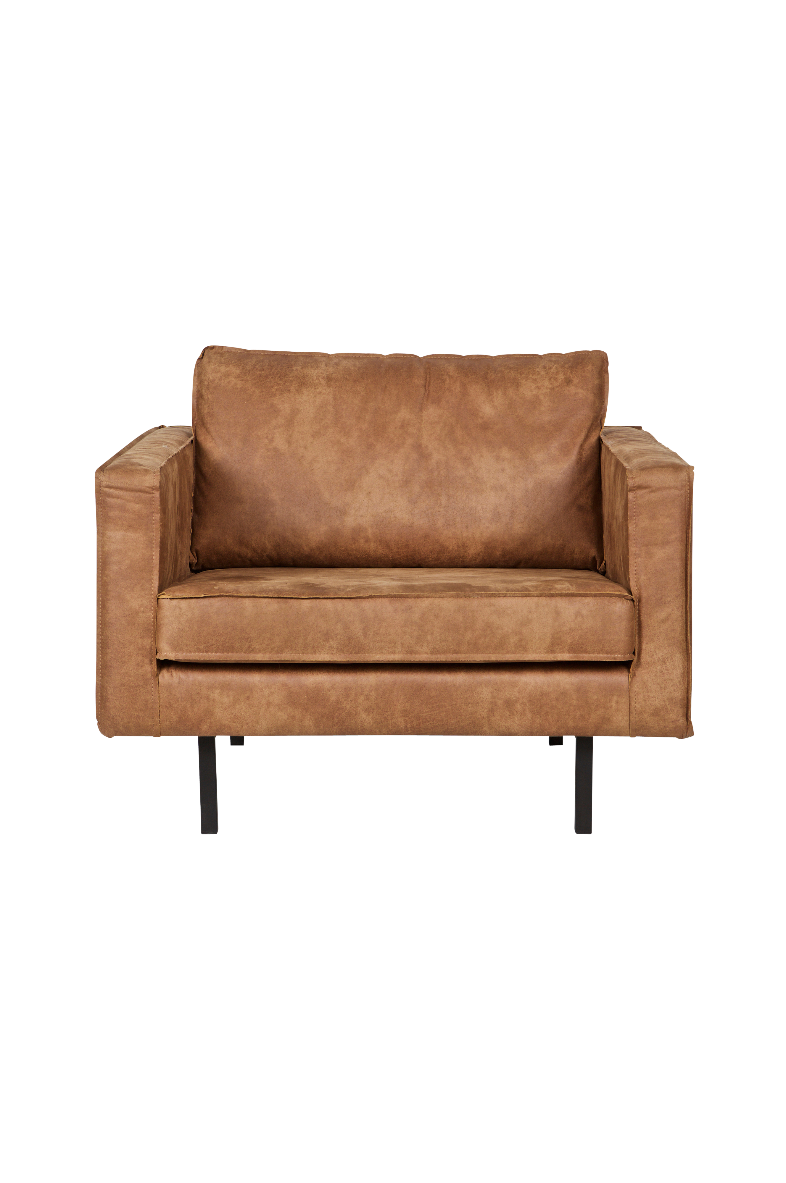 Moderni ja hienostunut loveseat. 1,5:n istuttava nojatuoli/loveseat on nahkaa. Metallijalat. Istuinkorkeus 45 cm, istuinsyvyys 60 cm ja käsinojan korkeus 68 cm.