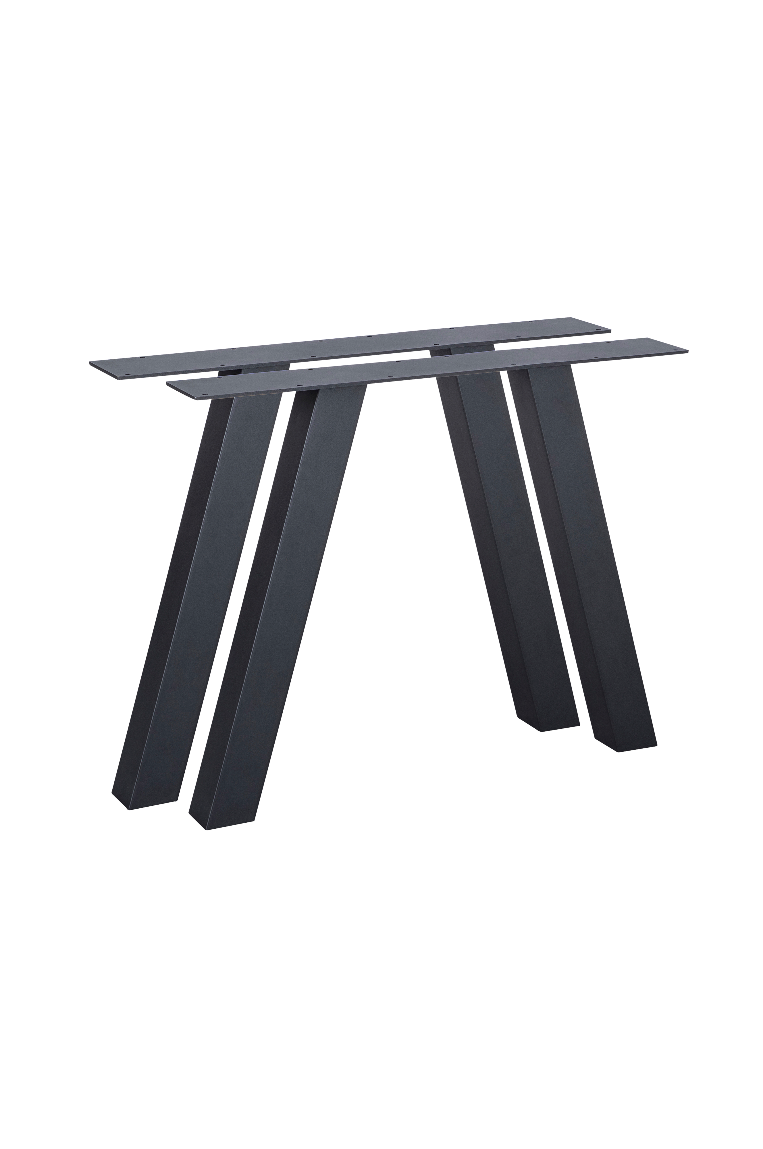 Tyylikkäät WOOOD Tablo A -pöydänjalat metallia erityisesti ulkokäyttöön. A-muotoinen jalka, jossa mattamustaksi jauhemaalattu teräsrunko 80 mm x 80 mm. Jalat ovat 74 asteen kulmassa.