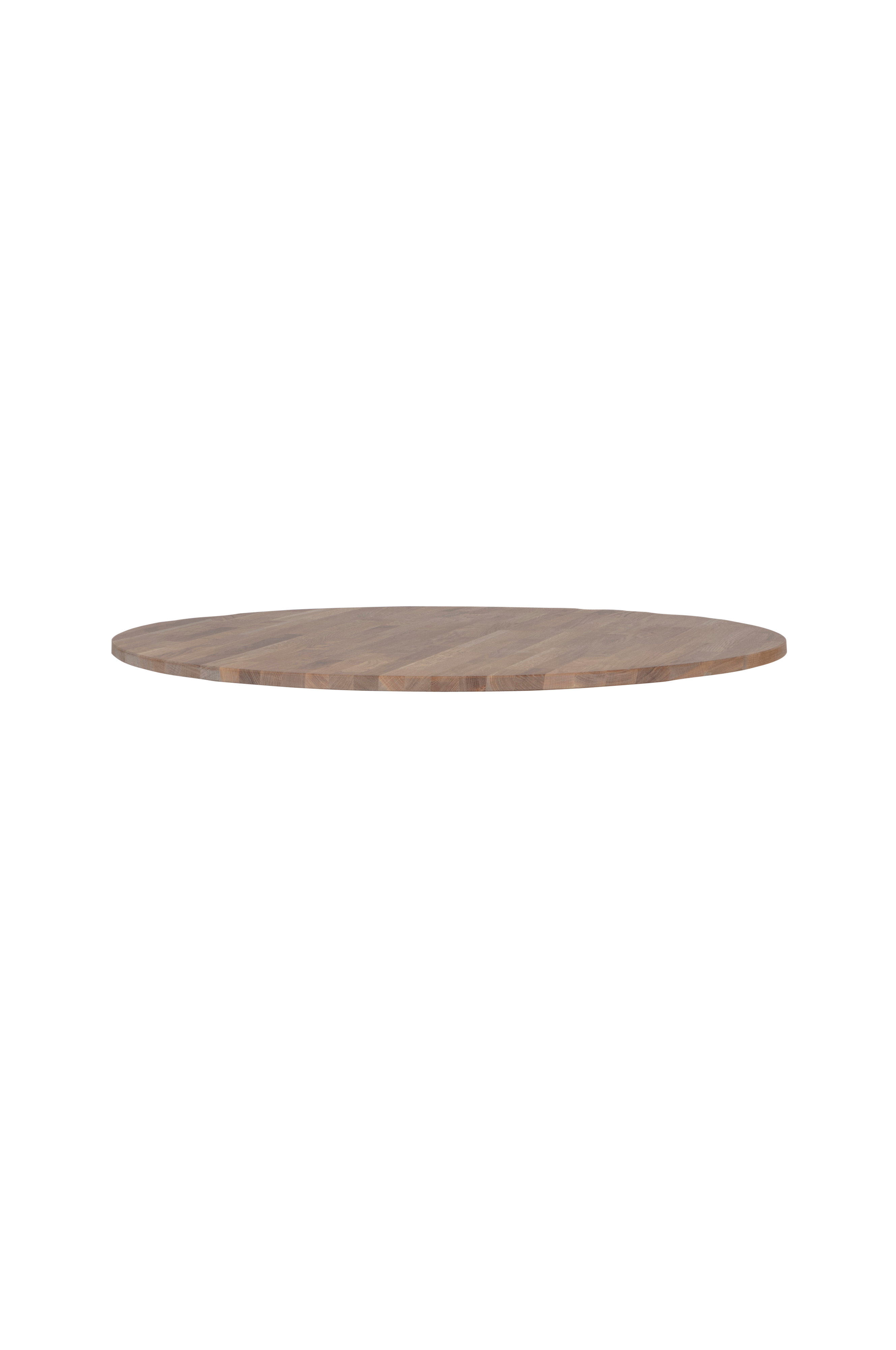 FSC-sertifioidusta massiivitammesta valmistettu pyöreä Tablo-pöytälevy hollantilaiselta WOOOD-tuotemerkiltä. Pöytälevy on käsitelty harmaalla öljyllä.