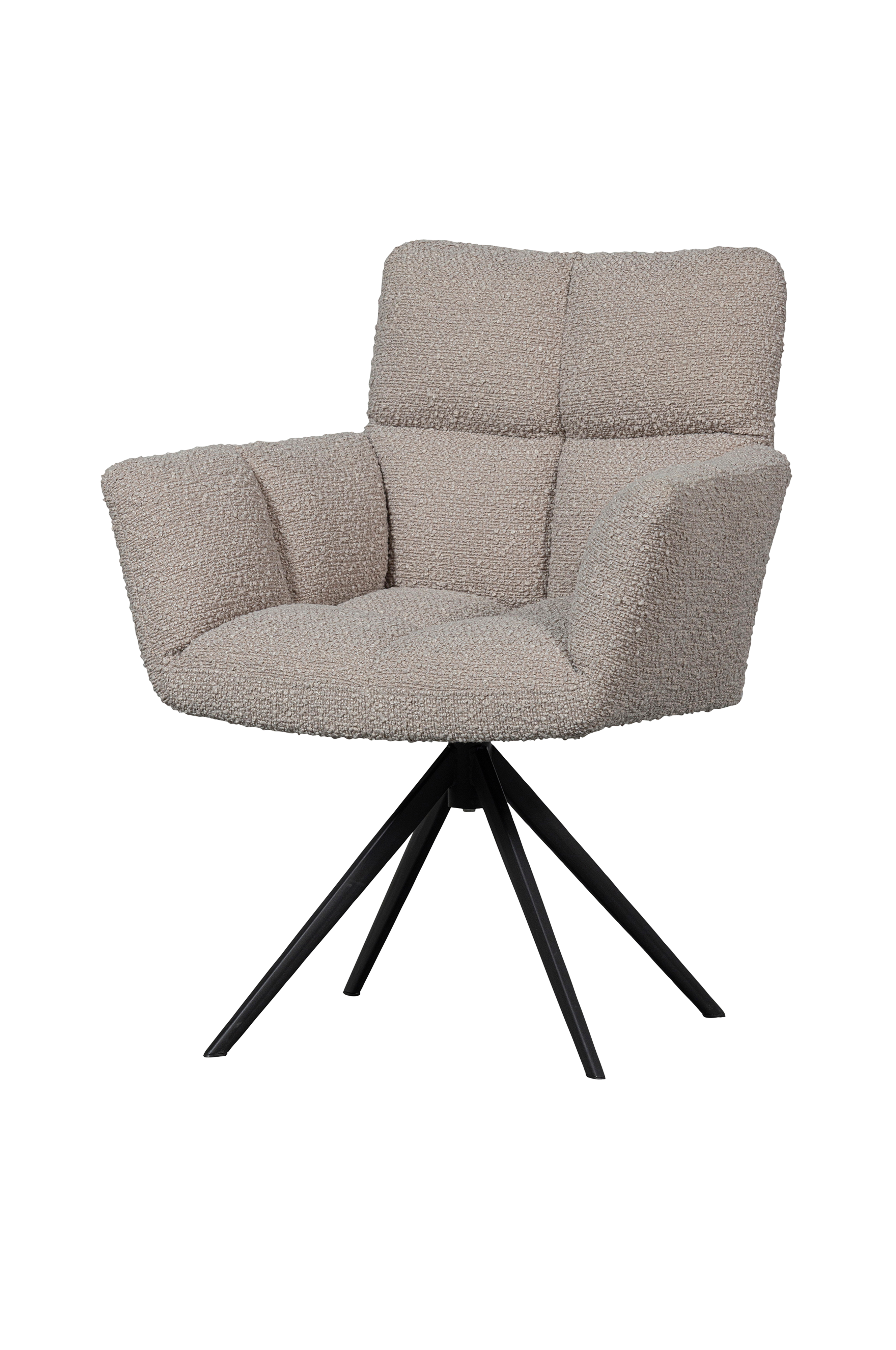 Vinnyn päällinen on uskomattoman pehmeää Cres-bukleekangasta. Päällyskangas on 100% polyesteriä, mikä tekee tuolista erittäin helppohoitoisen. Vinny-tuolissa on musta metallirunko, neljä jalkaa ja sulava pyörimistoiminto. PU-vaahtopehmuste tekee tuolista erittäin mukavan, mikä on eduksi pitkillä päivällisillä!