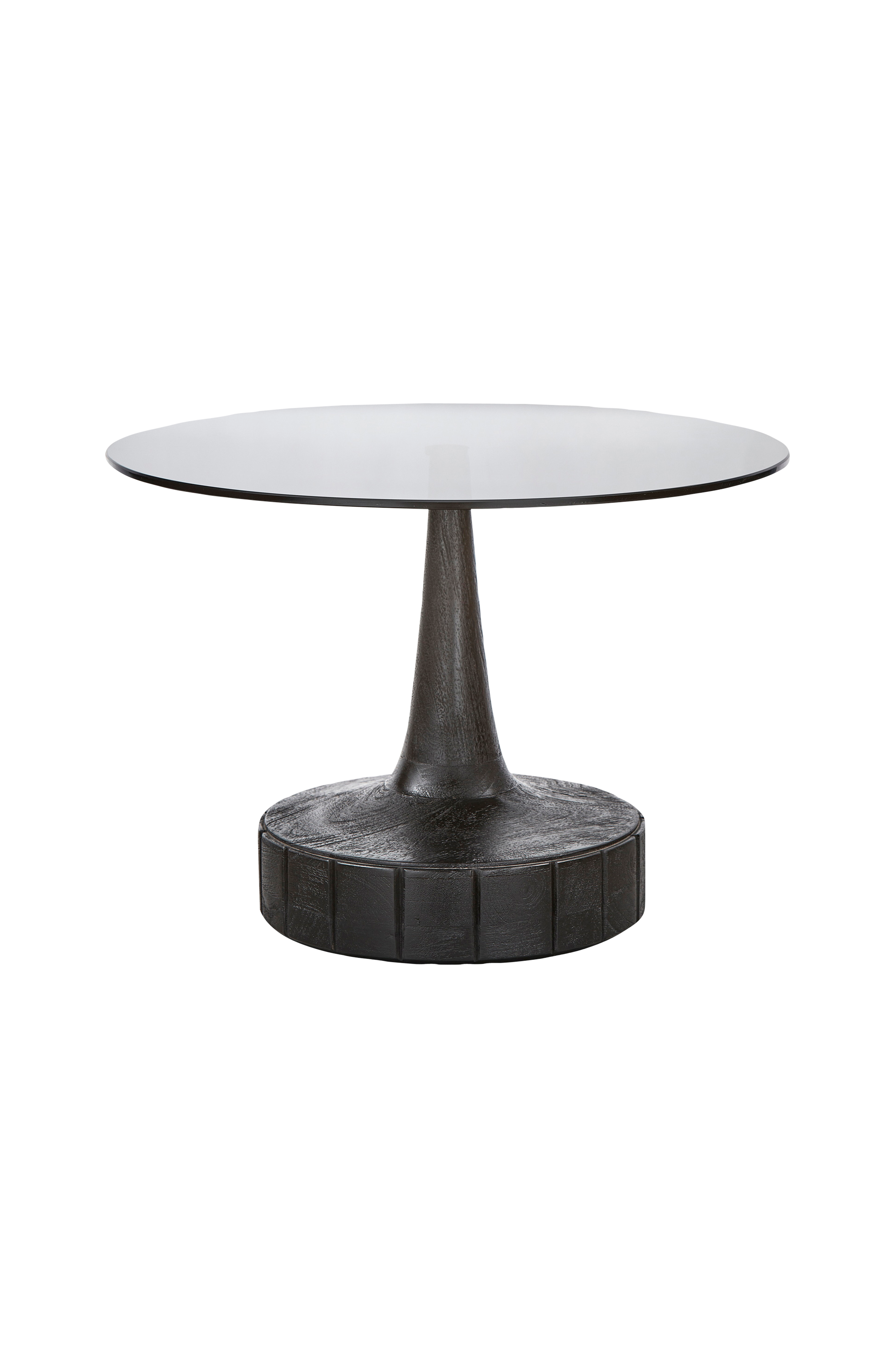 soya-sohvapöytä on tyylikäs esimerkki. Sivupöytä tulee hollantilaisen sisustusbrändin wooodin eksklusiivisesta mallistosta. Jalassa oleva silmiinpistävä puuveistos antaa näyttävän ulkonäön. Pyöreä, lasinen pöytälevy antaa ylellisen kosketuksen.