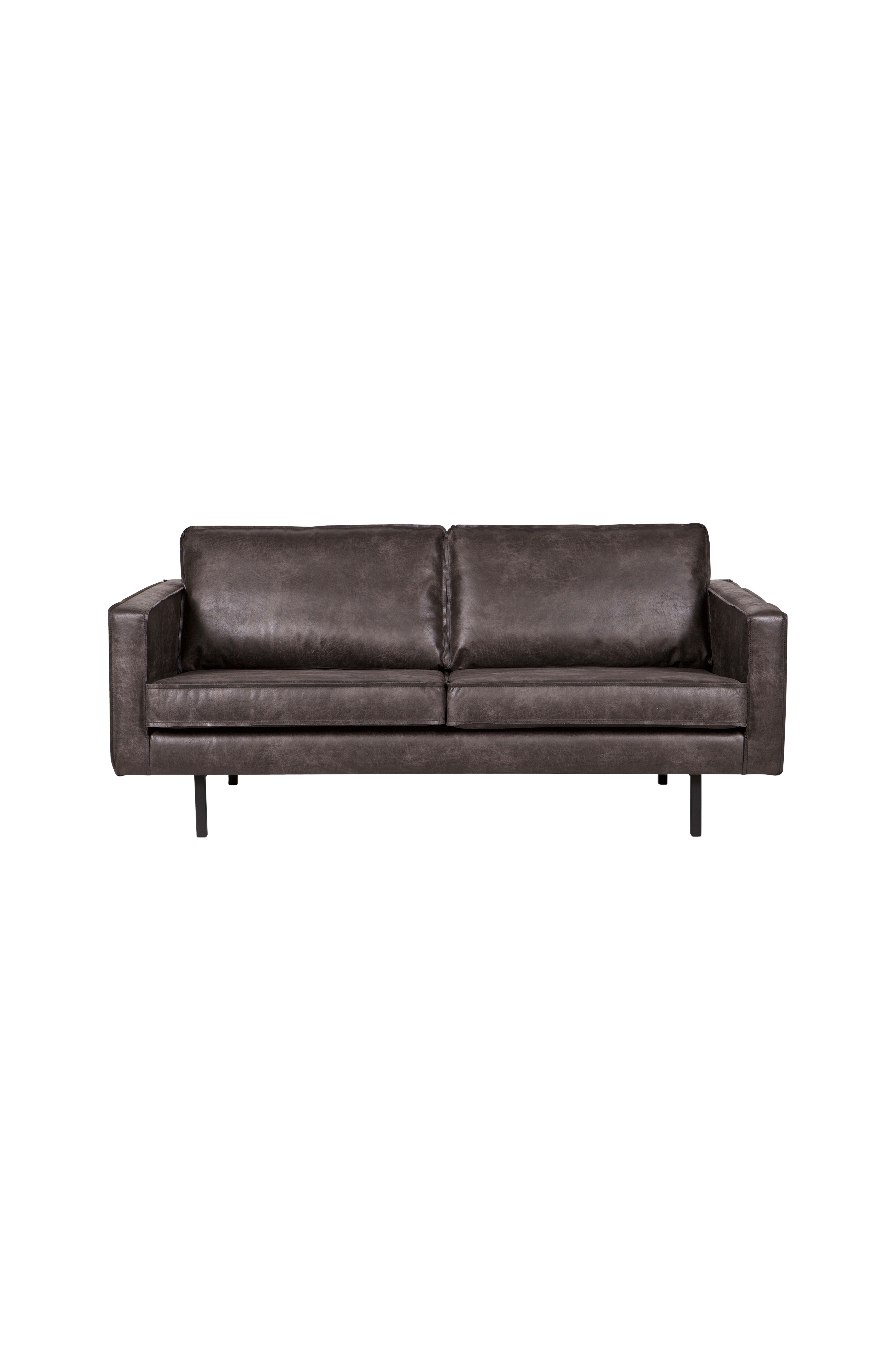Reilun kokoisessa 2,5:n istuttavassa sohvassa on tilaa istua. Näyttävä materiaali kierrätysnahkaa. Irtotyynyt eivät ole käännettäviä. Metallijalat. Istuinkorkeus 45 cm, istuinsyvyys 60 cm, istuinleveys 166 cm ja selkänojan korkeus 49 cm. Käsinojan leveys 12 cm ja korkeus 68 cm.