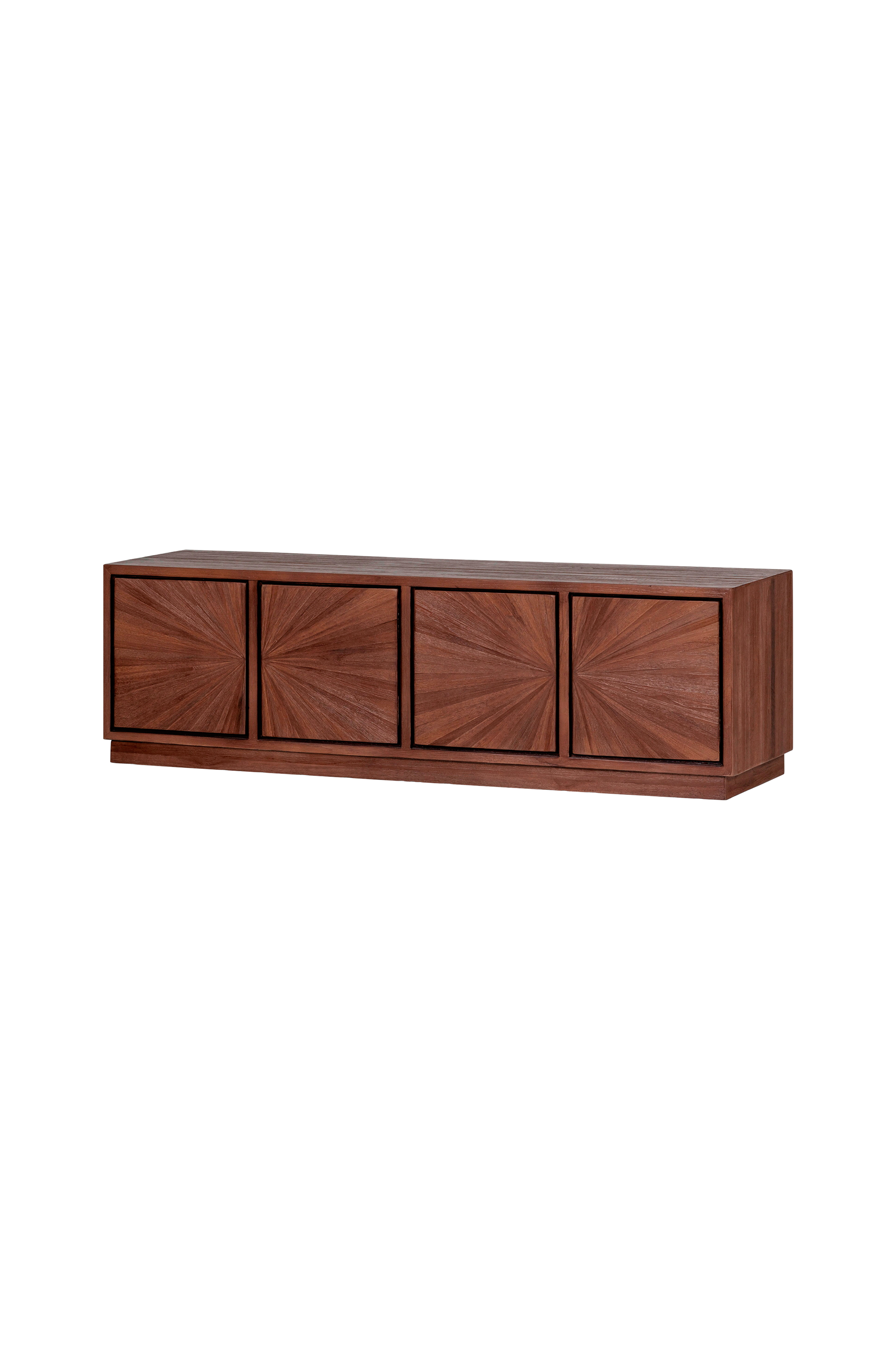 Etsitkö tyylikästä ja käytännöllistä tv-kaappia? Valitse sitten Sun! Sun-tv-kaappi kuuluu hollantilaisen sisustusbrändin Wooodin mallistoon ja on valmistettu kierrätetystä tiikipuusta. Hienostuneet yksityiskohdat ovissa antavat kaapille ainutlaatuisen, käsityöläisen ilmeen. Neljän oven takana on runsaasti säilytystilaa laitteille tai muille tarvikkeille. Näin voit säilyttää kaiken vaivattomasti!