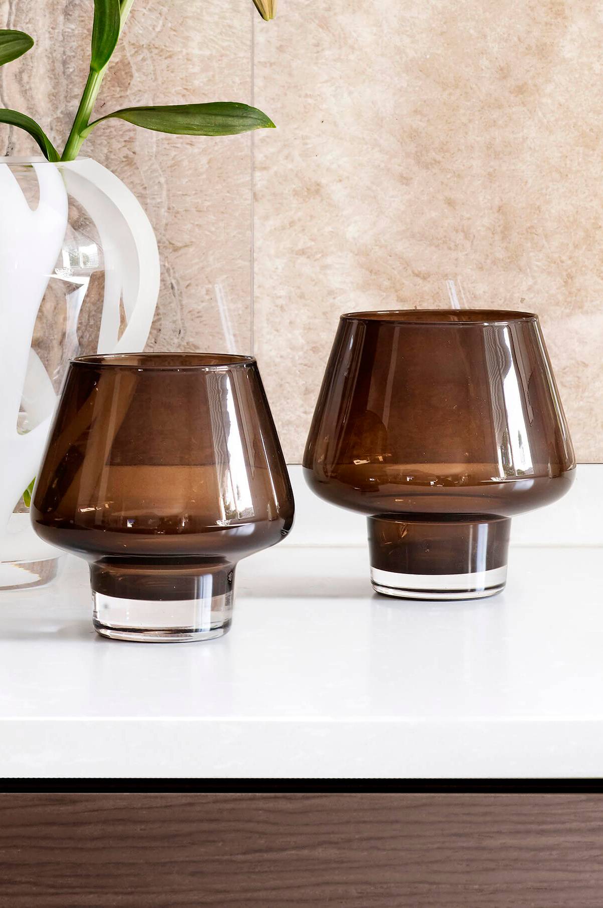 Mocha-kynttilälyhty! Suupuhallettua lämpimän ruskeaa lasia. Levittää puhtaan, kirkkaan valon.