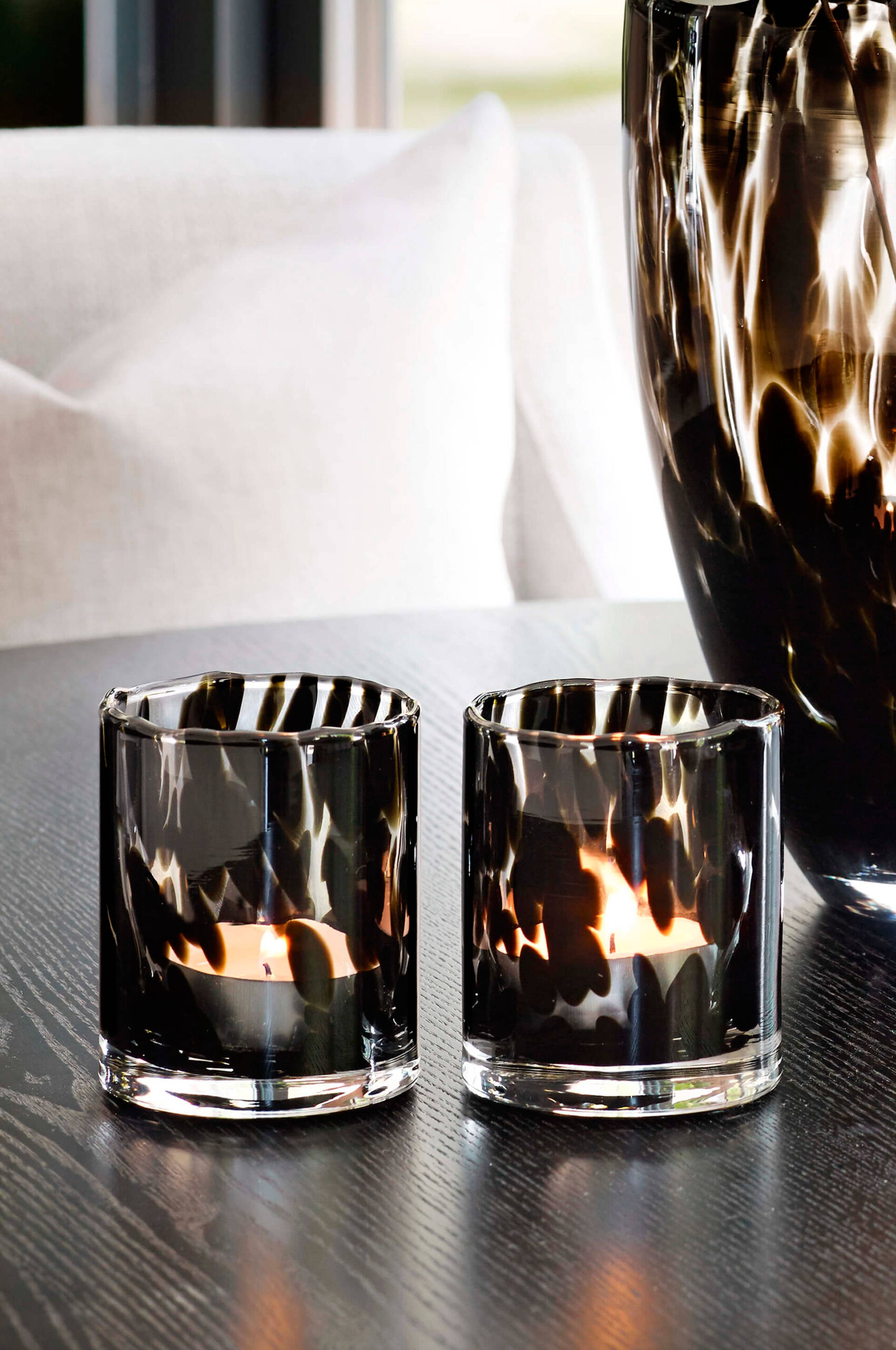 Lasitehtaalla valmistettu, suupuhallettu ja käsinmaalattu kynttilälyhty, 2 kpl/pakkaus. Jokainen tuote on yksilöllinen ja reuna on epätasainen. Sopii yhteen Oyster-maljakon kanssa. Korkeus 10 cm, Ø 8,5 cm.