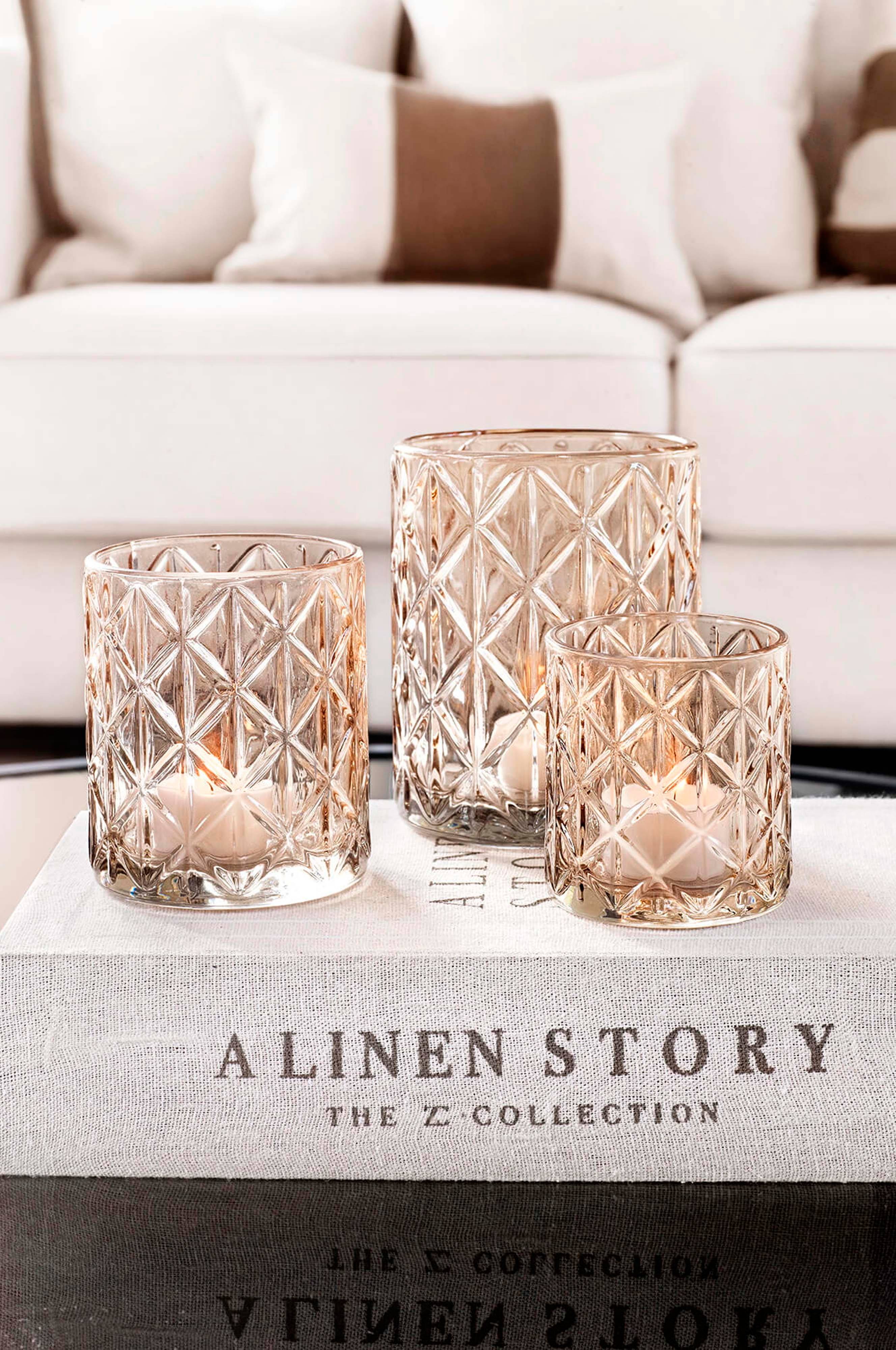 Kynttilälyhdyt optista lasia, joka antaa hohtavan tunnelmallisen valon. K 8/10/12,5 cm