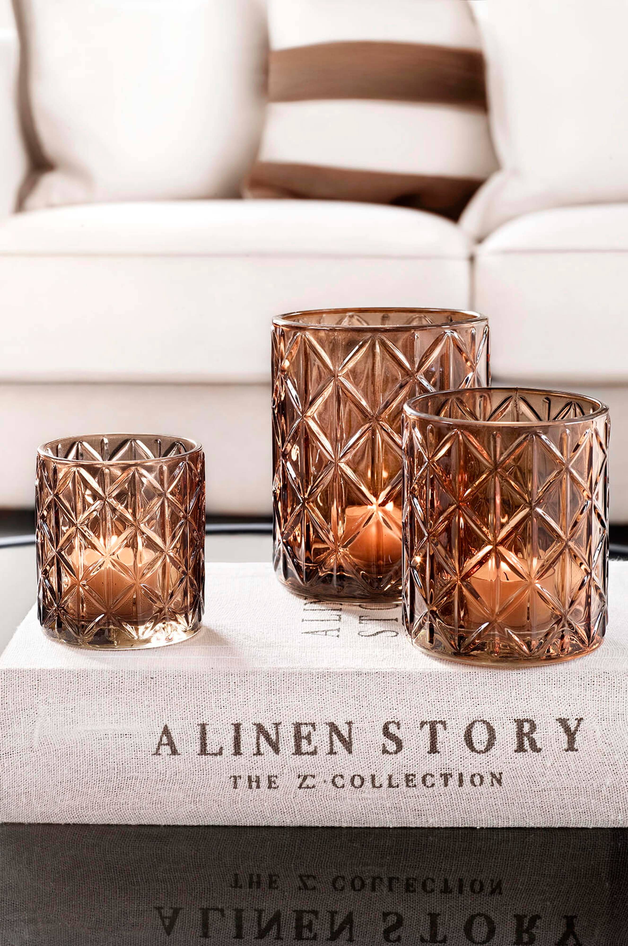 Kynttilälyhdyt optista lasia, joka antaa hohtavan tunnelmallisen valon. K 8/10/12,5 cm