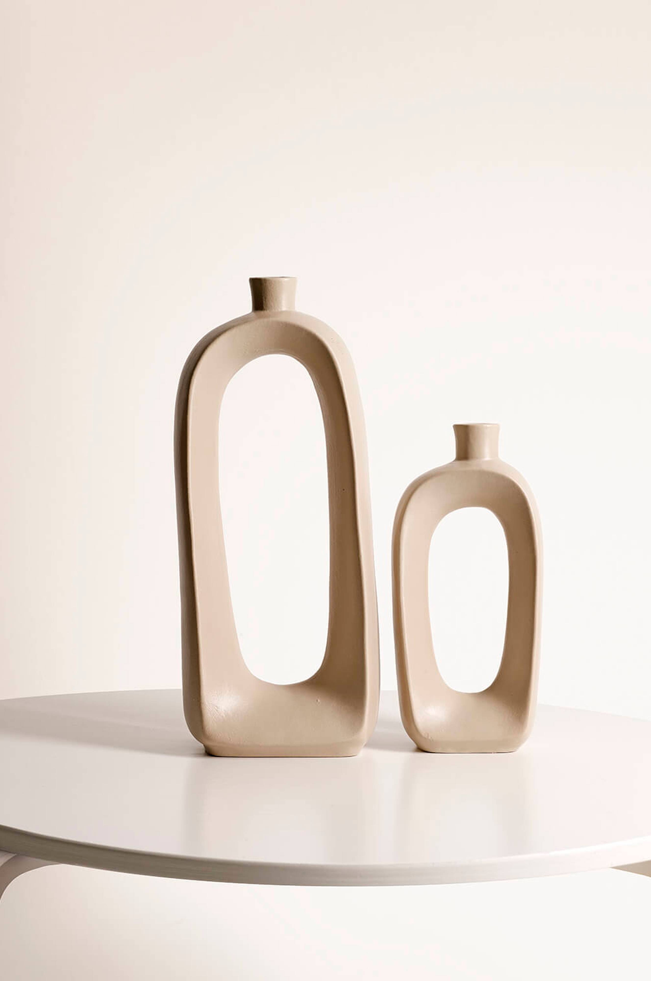 Kaksi kynttilänjalkaa keramiikkaa.