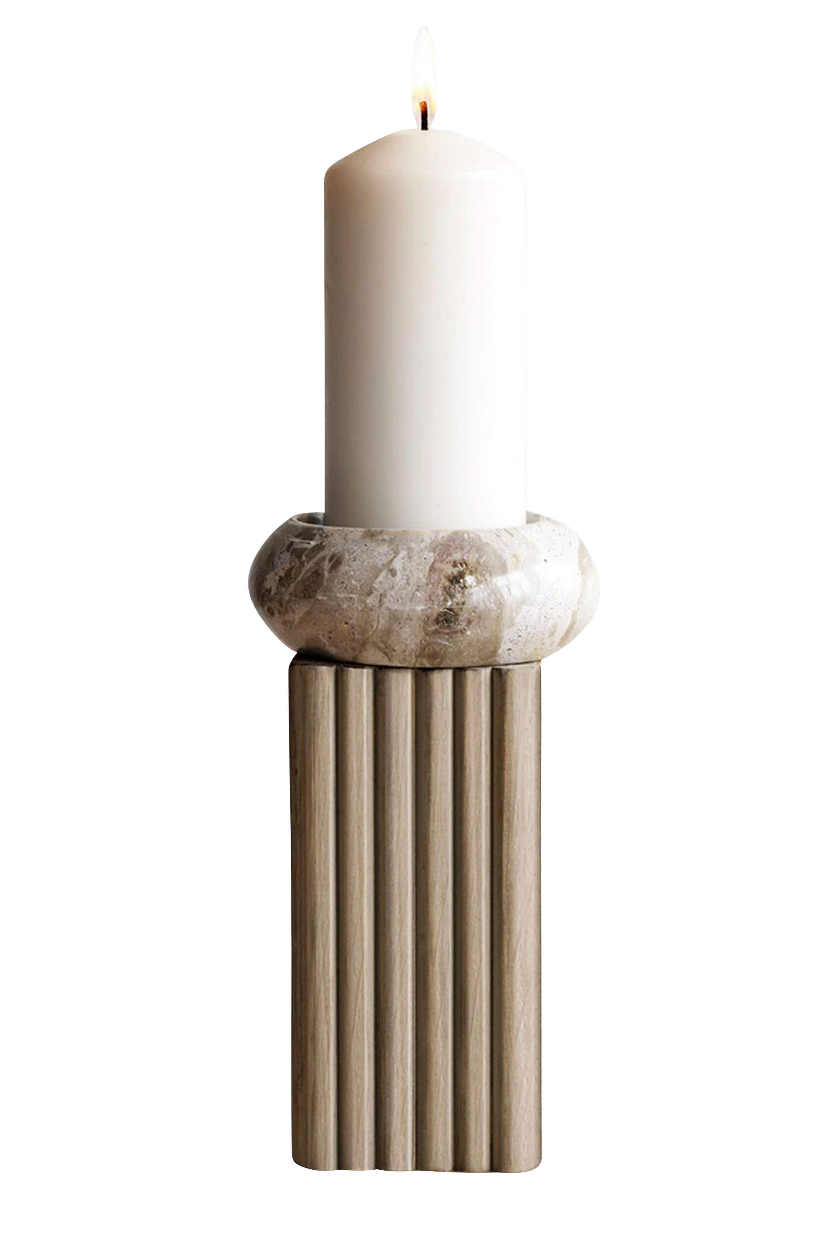 Kaunis kynttilänjalka käsintehty puusta ja marmorista.