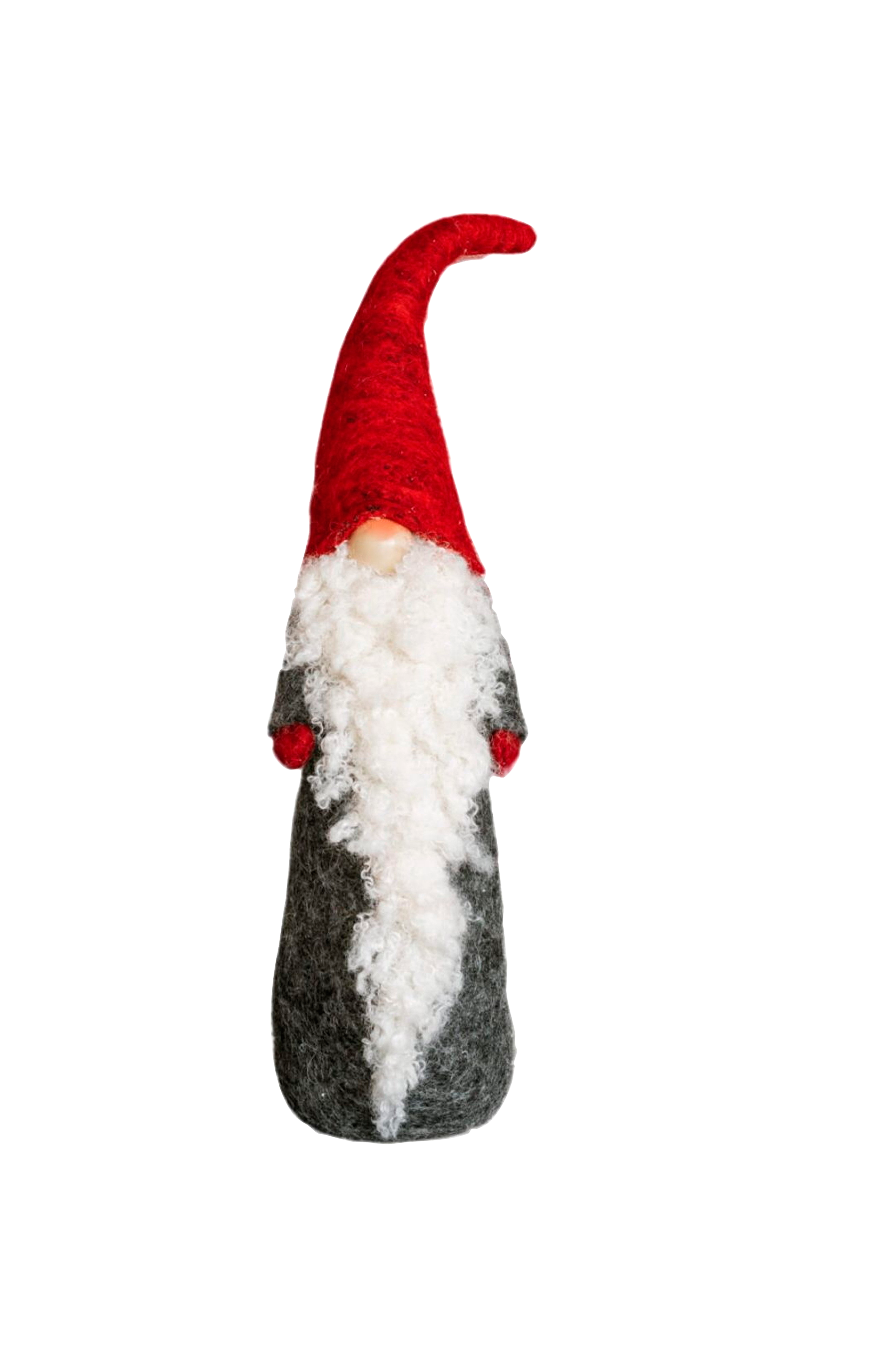 Klassinen tonttu, jolla on punainen huppu ja karvainen parta. Seisoo tukevasti ja on mukava joulukoriste.