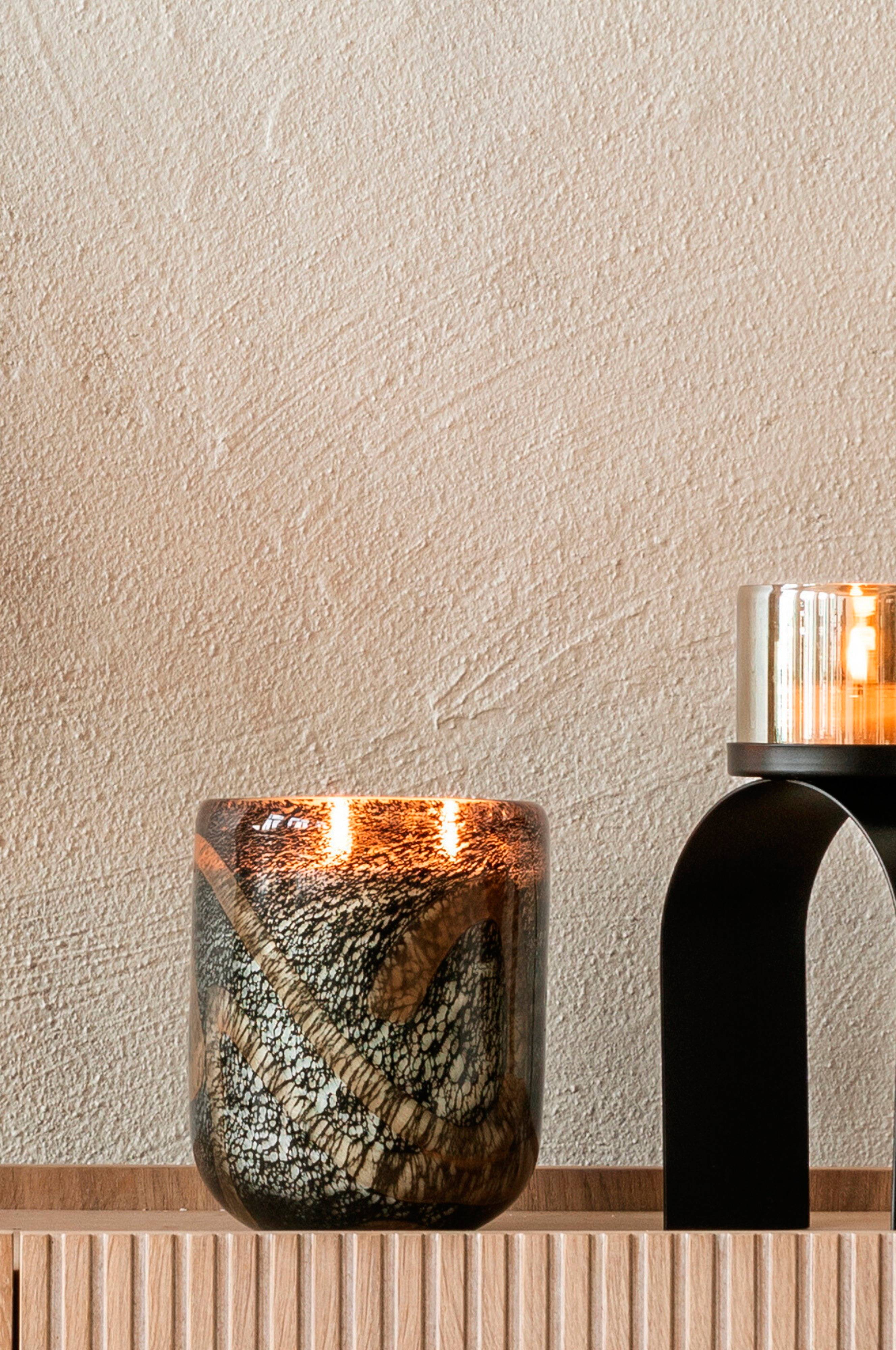 Ihastuttava tuoksukynttilä ylellisessä suupuhalletussa lasiastiassa, jossa on valkoisia ja beigejä yksityiskohtia. Maaginen tuoksu meripihkaa, myskiä, kukkia ja patsaita. Tuoksukynttilä levittää miellyttävää tuoksua huoneeseen. Paloaika n. 100 tuntia. Sytytä kynttilä ja anna sen palaa, kunnes pinta muuttuu nestemäiseksi. Kun pinta on nestemäinen, älä anna sen palaa yli tuntia. Nestemäisen vahan pintakerroksen korkeus ei saa koskaan ylittää yhtä senttimetriä. Älä koskaan polta kynttilää kokonaan alas, vaan jätä aina senttimetri pohjaan.