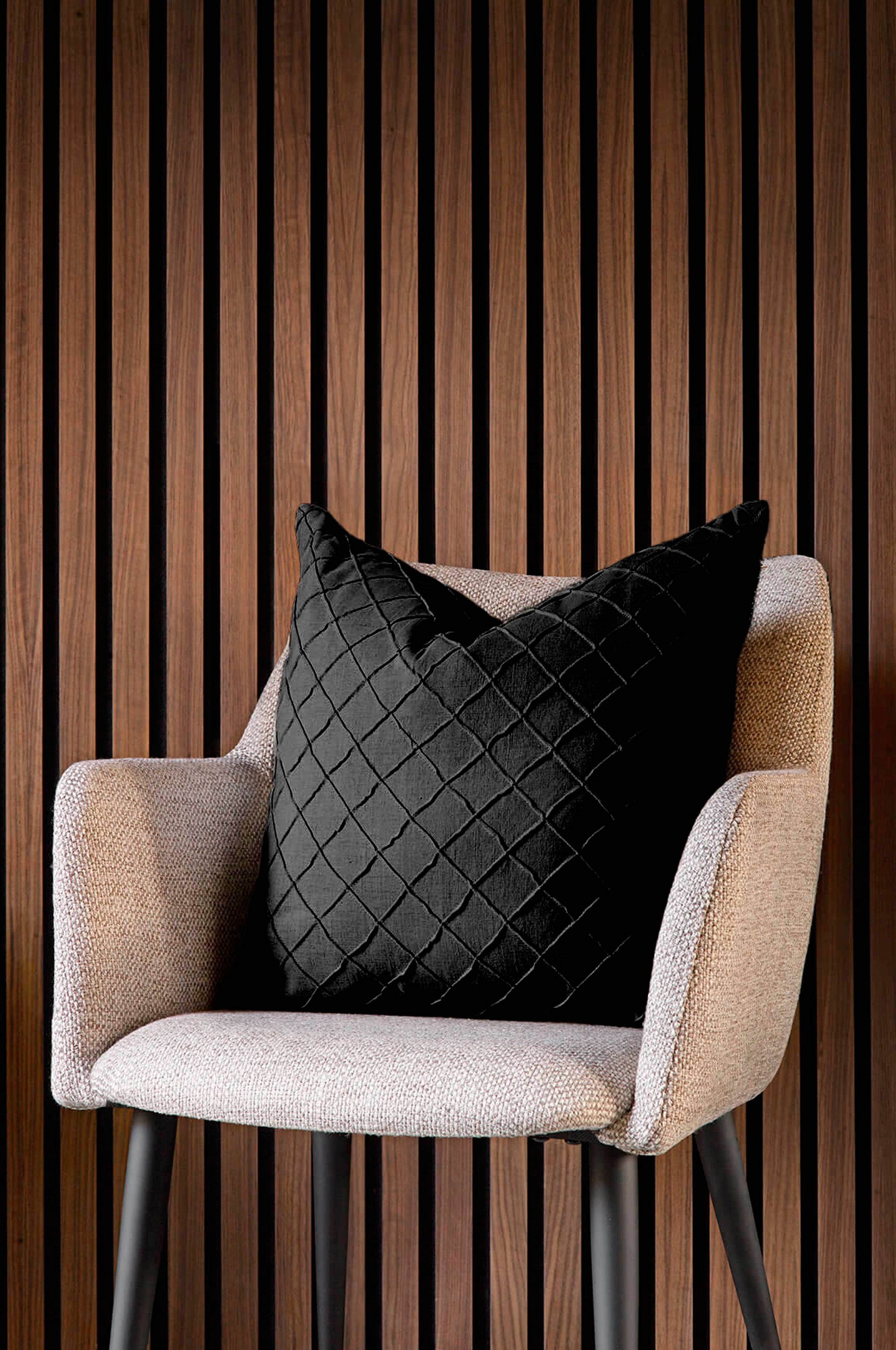 Tyynynpäällinen pellavamaista puuvillaa, jossa pintuck-kuvio. Musta takaosa samaa materiaalia.