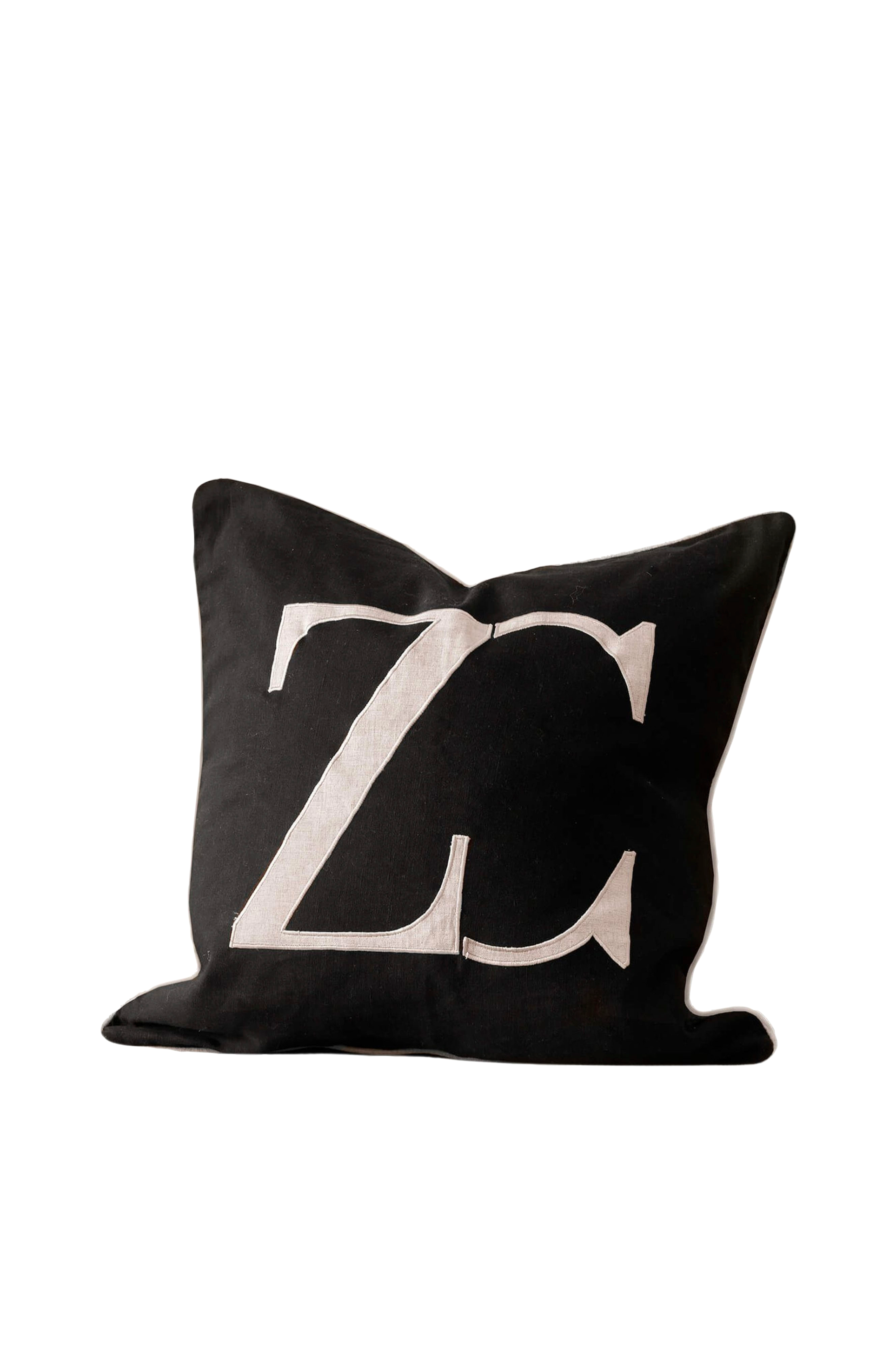 Puuvillatyynynpäällinen, jossa klassinen ZC-logo. Tyylikäs musta pohja ja luonnonvalkoinen kirjailu.