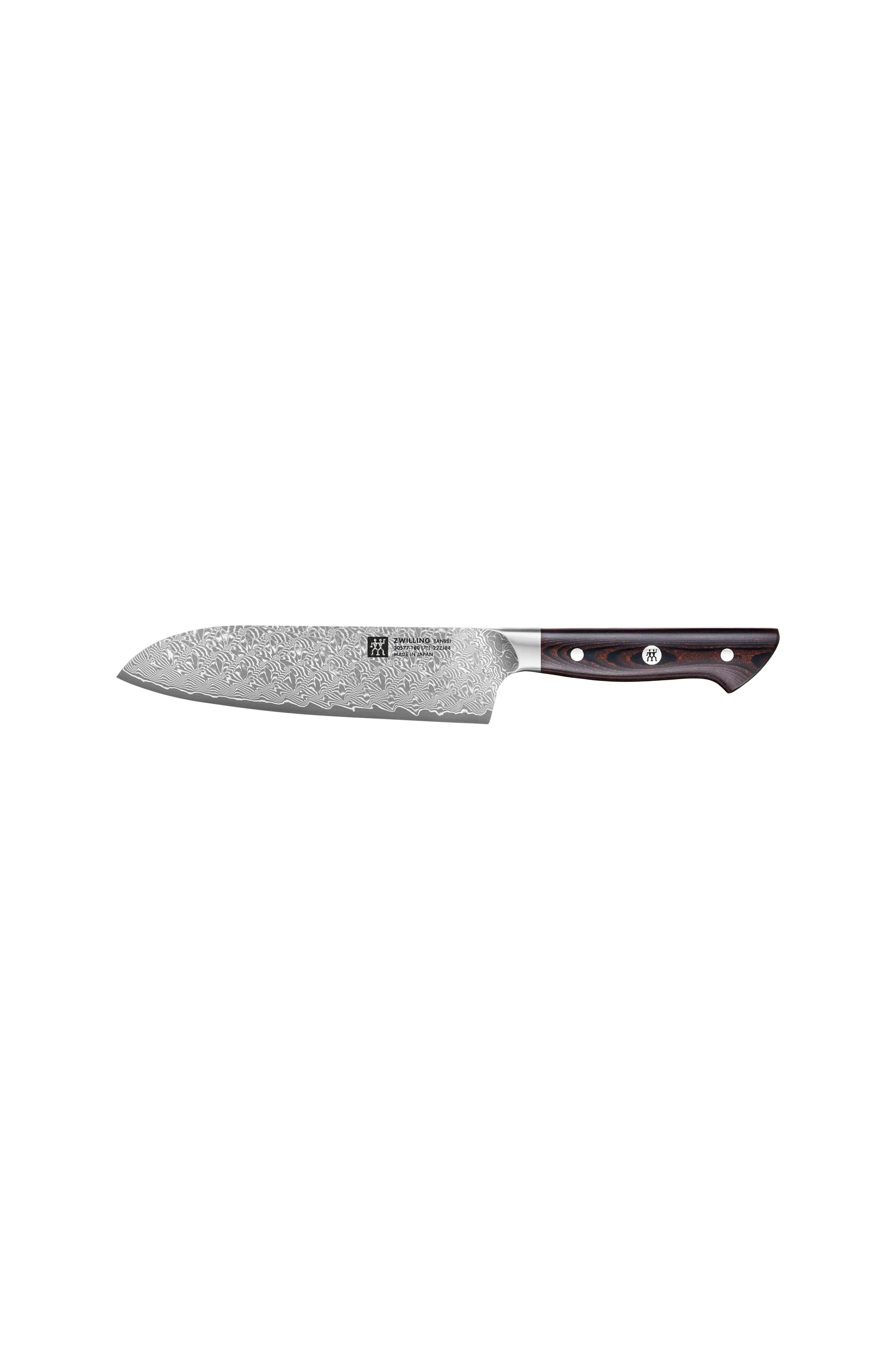 Tanrei -sarja Zwilling on ainutlaatuinen yhdistelmä japanilaista käsityötaitoa ja saksalaista insinööritaitoa, joka on vertaansa vailla kovuudessaan ja terävyydessään ja jossa on erottuva Damaskuskuvio. Jokaisessa Tanrei kokkiveitsessä on oma ainutlaatuinen teräkuvio, joka kulkee kärjestä puskuriin. Jokainen veitsi on valmistettu Japanissa. Damaskuskuvioinnin ansiosta kokkiveitsellä on paitsi poikkeuksellisen kaunis ulkonäkö myös vaikuttava 63 Hrc - se edustaa erityisen suurta kovuutta, jota harvoin saavutetaan keittiöveitsissä.