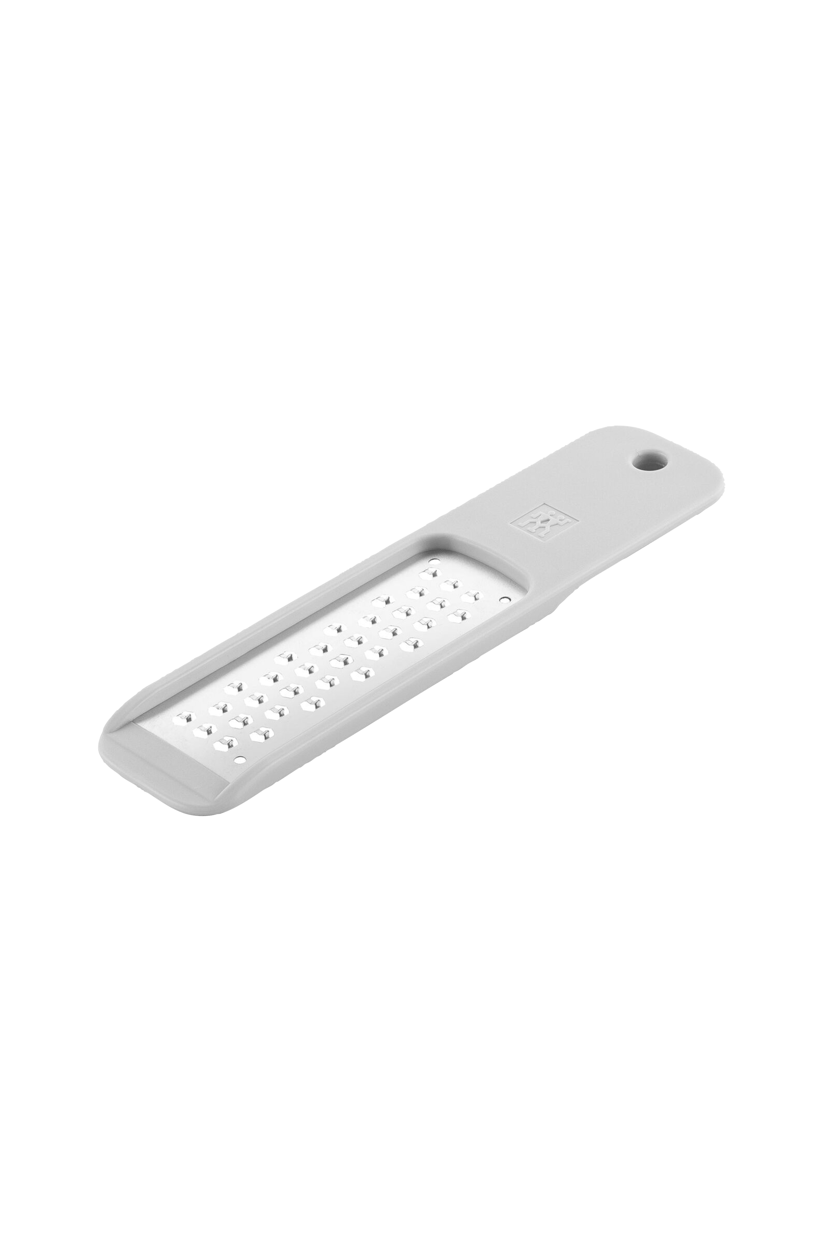 Kompakti, monikäyttöinen miniraastinrauta, jossa on ainutlaatuinen Z-Cut-tekniikka. Se on sitruunankuorija, parmesaaniraastin ja muskottipähkinäraastin samassa. Kaksisuuntaisen terän ansiota voit raastaa molempiin suuntiin, jolloin saat helposti raastettua muskottipähkinää, inkivääriä, valkosipulia, suklaata ja myös kovia juustoja. Raastinrauta on litteä, ja sitä soi siten käyttää missä tahansa: Voit raastaa suoraan lautasen päälle, kulhoon tai salaattiin. Valmistettu ruostumattomasta 18/10-teräksestä, muovikahva. Konepesunkestävä ja helppo puhdistaa.