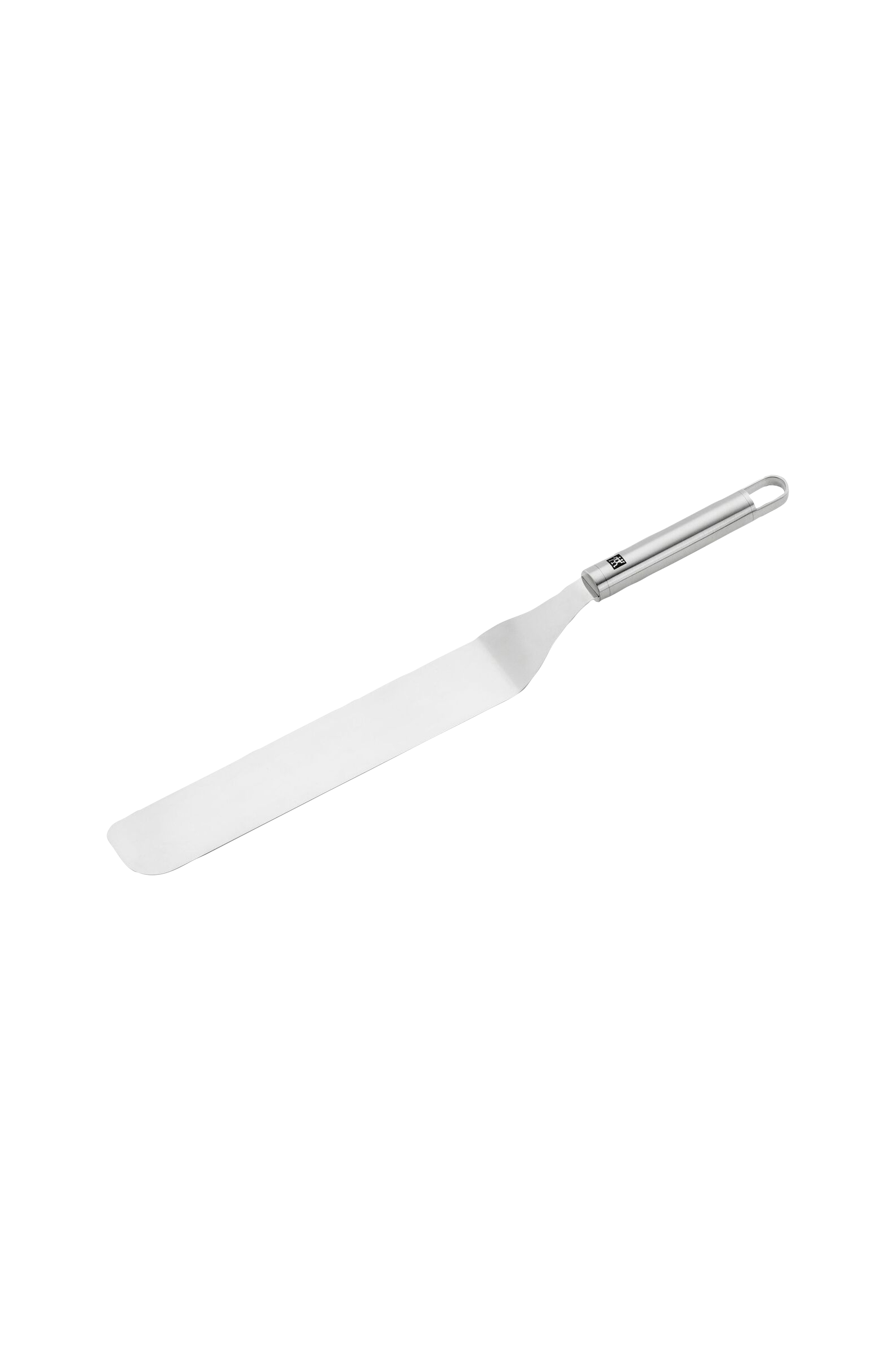 ZWILLING Pro -sarjan palettiveitsi/lasta kulmalla. Voit helposti nostaa ja kääntää herkullisia munakkaita ja pannukakkuja. Sopii myös ihanteellisesti kerman ja täytekakun täytteiden levittämiseen ja tasoittamiseen. Valmistettu premium-teräksestä.