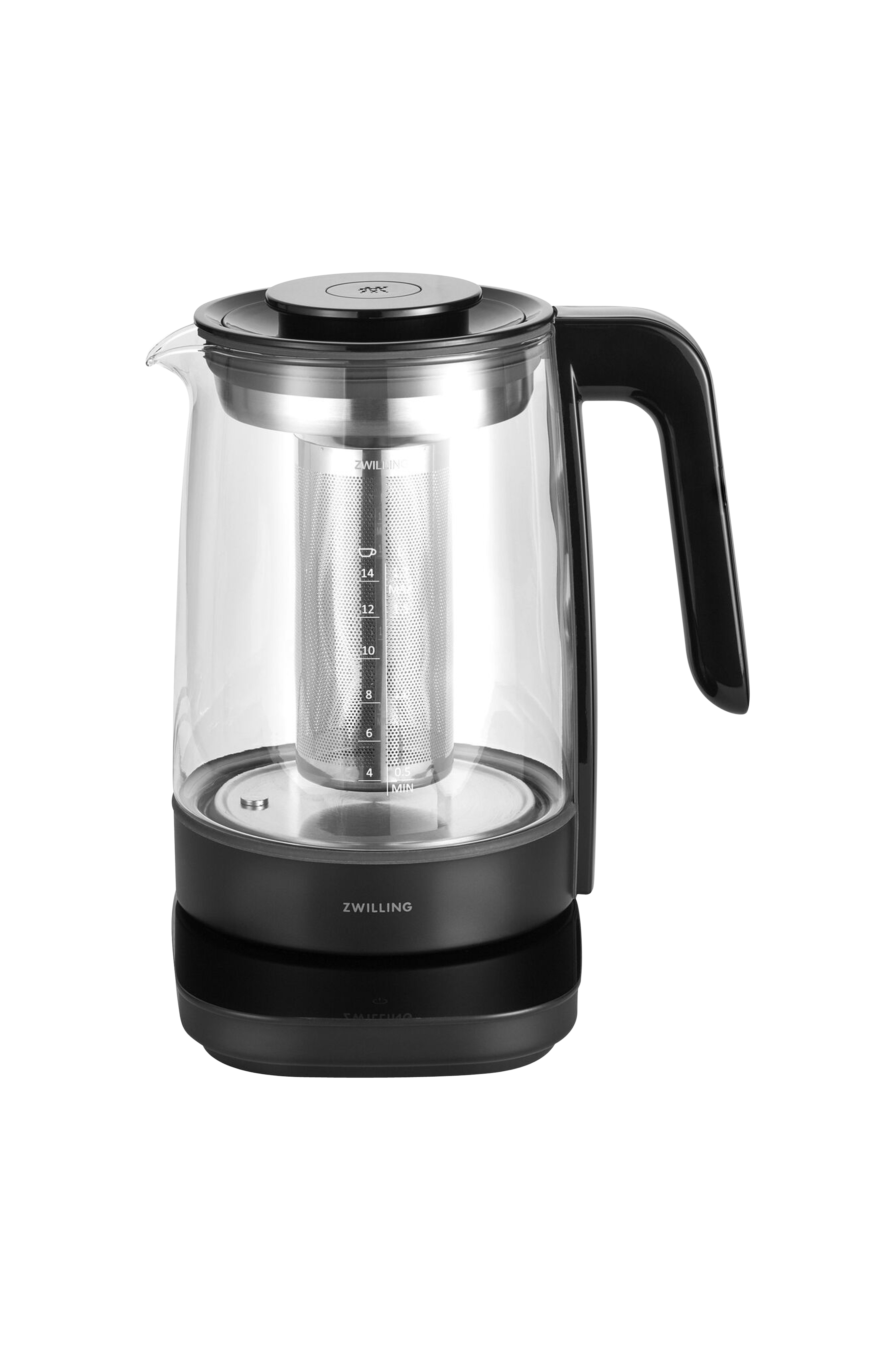 Tyylikkäästi muotoiltu Zwilling Enfinigy -vedenkeitin, jossa on hopeanvärisiä ja valkoisia yksityiskohtia sisältävä lasikannu ja ruostumattomasta 18/10-teräksestä valmistettu teesiivilä. Vedenkeittimessä on ajastin, keep-warm-toiminto, latausalusta ja LCD-kosketusnäyttö. Vetoisuus 1,7 l. Esikuumennustoiminnon avulla vedenkeitin voi ensin lämmittää veden 100 ° C:seen ja antaa sitten äänimerkin, kun haluttu lämpötila on saavutettu. Sen jälkeen vain kaadat teen ruostumattomaan teesiivilään. Integroitu teeajastin antaa merkin, kun teesi on valmis. Vedenkeittimessä on haudutusaika 0-10 minuuttia ja sen voi säätää valmistettavan teen mukaan. Laitetta voi luonnollisesti käyttää tavallisena vedenkeittimenä ilman teesiivilää. Saatavilla on myös erikseen ostettava lisäosa lastenruokapurkkeja varten, jonka avulla ne voi lämmittää kannussa juuri oikeaan lämpötilaan. Keitintä voidaan käyttää myös tuttien ja pullojen steriloimiseen 100 °C:n lämpötilassa 5 minuutin ajan. Modernisti muotoiltu lasinen vedenkeitin on helppo puhdistaa.