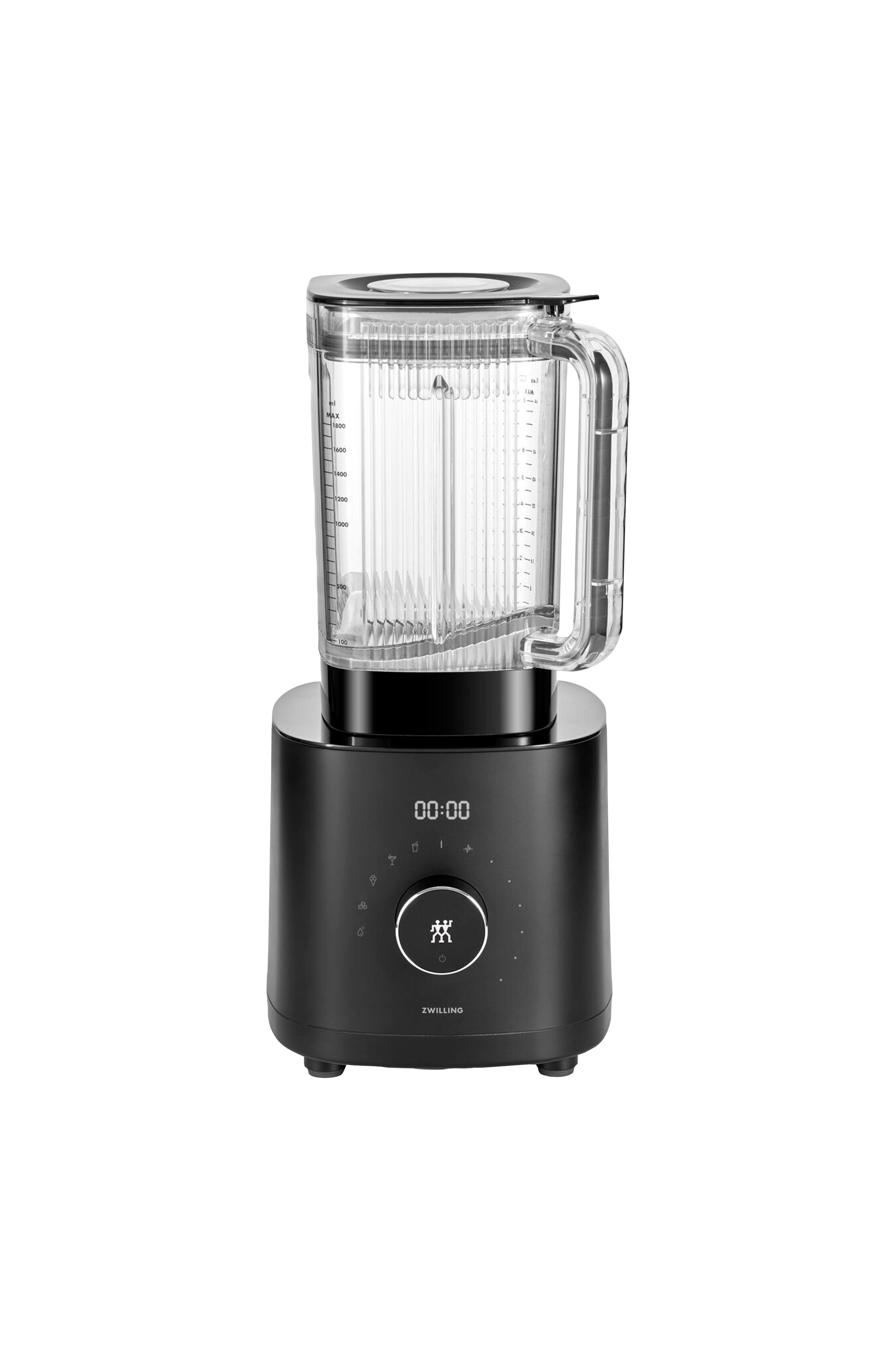 Zwilling ENFINIGY -tuotesarjan tehokas Power Blender -tehosekoitin. Erityishammastus ja piraija-hampaat helpon ja tarkan soseutustuloksen saamiseksi. Premium-luokan ruostumaton ZWILLING-teräslevy ja tehokas 1 600 watin moottori. 1,8 litran sekoituskannu on valmistettu BPA-vapaasta Tritanista, ja se on muotoiltu suurille määrille. Kulutusta kestävä kannu on myös lämmön- ja kylmänkestävä. Suositellaan käsinpesua tai sisäänrakennetun puhdistusohjelman käyttöä. Ammattimaisen sekoittimen ulkopinta on myös helppo puhdistaa modernin muotoilun ansiosta. Laitteessa on LCD-näyttö. Sisäänrakennettu turvatoiminto estää sekoitinta toimimasta, mikäli kansi ei ole kiinni, ja ehkäisee siten loukkaantumisriskiä. Kuusi automaattista ohjelmaa (pulse-toiminto, smoothie, cocktail, jäätelö, jäänmurskaus ja puhdistus). 12 nopeusasetusta.